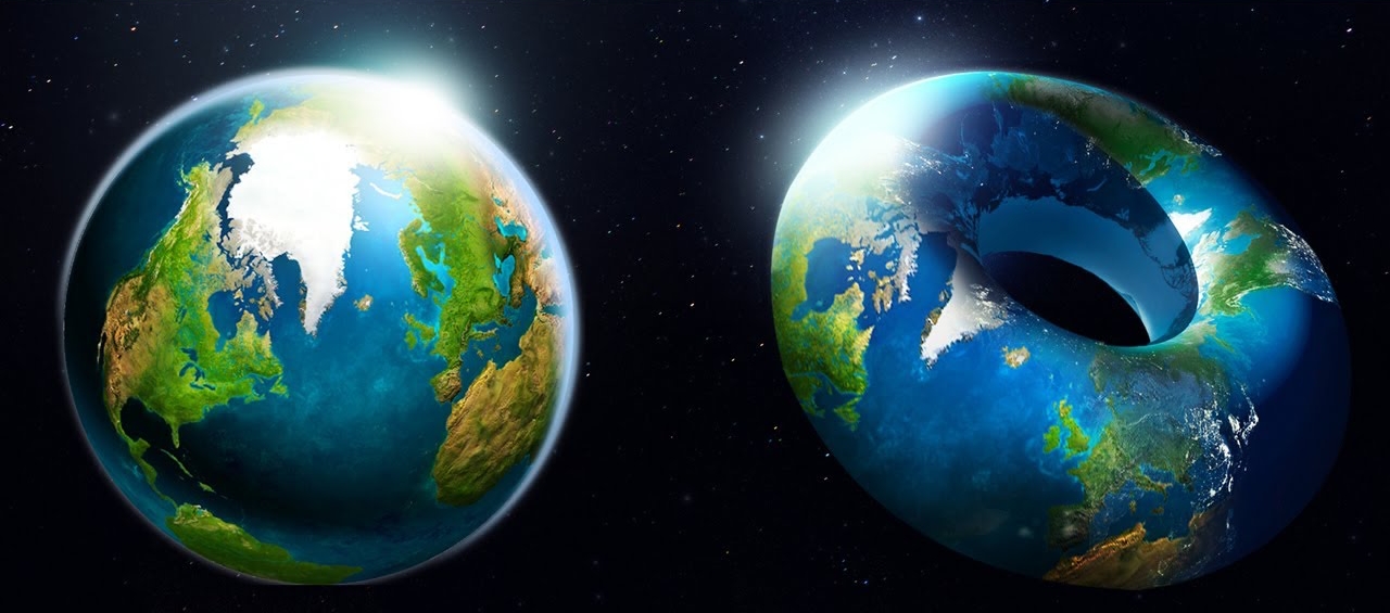먼저 '다양체'가 무엇인지 알아보자. '다양체(Manifold)'란 간단히 말하면, 어떤 성질을 만족하는 도형이나 공간을 가리킨다. 여기서는 '전체 안의 일부는 인식할 수 있지만 전체상은 확실히 알지 못하는 도형이나 공간'으로 생각하자. 예컨대 우리는 지구라는 거대한 구면의 표면에 살아간다. 그러나 먼 옛날 사람들은 지구가 광대한 우주에 떠다니는 구체라는 것 따위는 상상할 수도 없었고, 그저 지구는 넓고 납작하다고 생각했을 것이다. 실제로 좁은 범위를 보면, 지구 표면은 납작한 면처럼 보인다. '위상수학' 세계에서는 지구와 같은 구체의 표면, 즉 구면은 '2차원 다양체'로 분류된다. 우리가 알고 있는 3차원 공간에서는 지구상에서 위치를 특정하려면 '위도', '경도', '해발 고도'의 3가지 값이 필요하지만, 지구의 표면에 한정하면 '위도'와 '경도' 2가지 값으로 충분하다. 지구 표면은 2차원이기 때문이기 때문이다.
