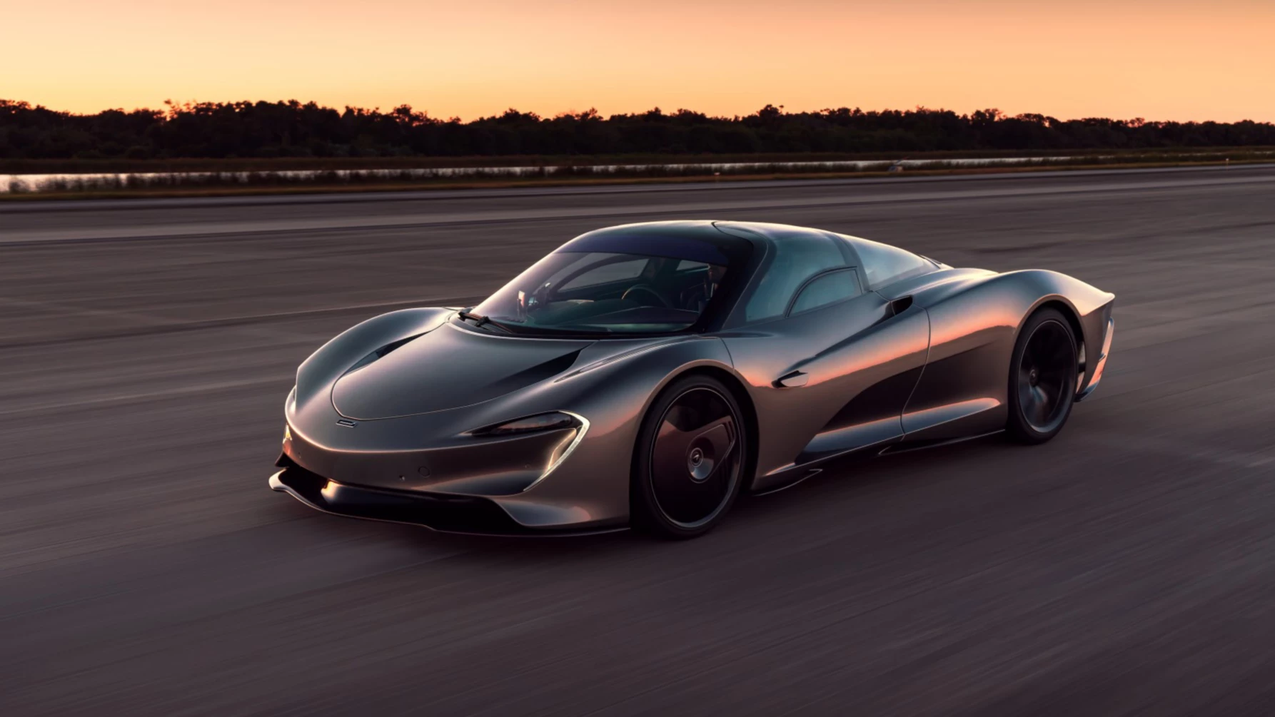 아래의 사진은 F1 참가 멤버가 설립한 영국의 슈퍼카 메이커 '맥라렌 오토모티브(McLaren Automotive)'가 제조한 '스피드테일(Speedtail)'이라는 모델이다. 3인승이며 F과 마찬가지로, 운전석이 중앙에 배치된다. 2기의 '터보차저(Turbocharger)'를 지닌 4000cc 'V형 8기통 엔진'과 '전기 모터'를 탑재한 하이브리드차로, 최대 출력은 1070마력이다. 최고 속도는 맥라렌 사상 가장 빠른 시속 403km이며, 정지 상태에서 단지 12.8초 만에 시속 300km에 도달한다. 큰 특징은 수방으로 길게 뻗은 외관이다. 전체 길이 5.1m로, 5m를 넘는 하이브리드카는 매우 드물다. 전면의 형상은 공기의 힘에 크게 영향을 미친다. 그래서 '스피드테일'에서는 매끄러운 형상을 통해 전면에서 받은 바람을 흩뜨리지 않고 그대로 후방에까지 흘림으로써 저항을 줄인다. 차체 뒤쪽 끝에는 '탄소 섬유 강화 플라스틱(CFRP: Carbon Fiber Reinforced Plastics)'제 차체와 일체인 변형된 보조 날개가 달려 있어, '다운 포스(Down Force, 차체를 아래 방향으로 누르는 힘)'를 확보하고 '에어 브레이크(Air Brake)'로 사용된다고 한다. 전류를 흘리면 색이 나타나 빛의 투광량이 바뀌는 '일렉트로크로믹(Electrochromic)' 유리를 채용했다.
