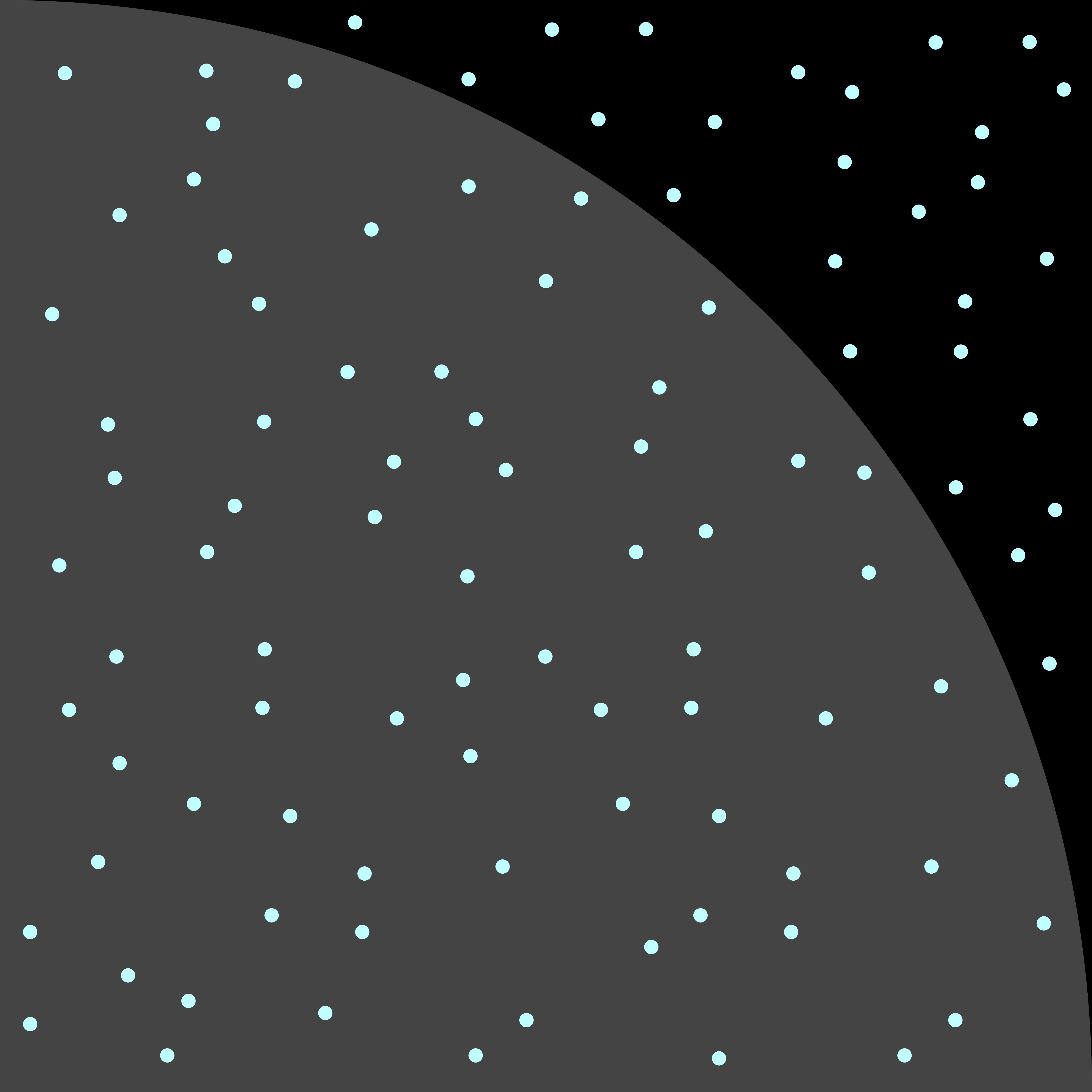 - 2단계: 2개의 난수를 xy 좌표로 하는 점을 만든다. (x, y)=(0.294, 0.479)가 될 것이다.