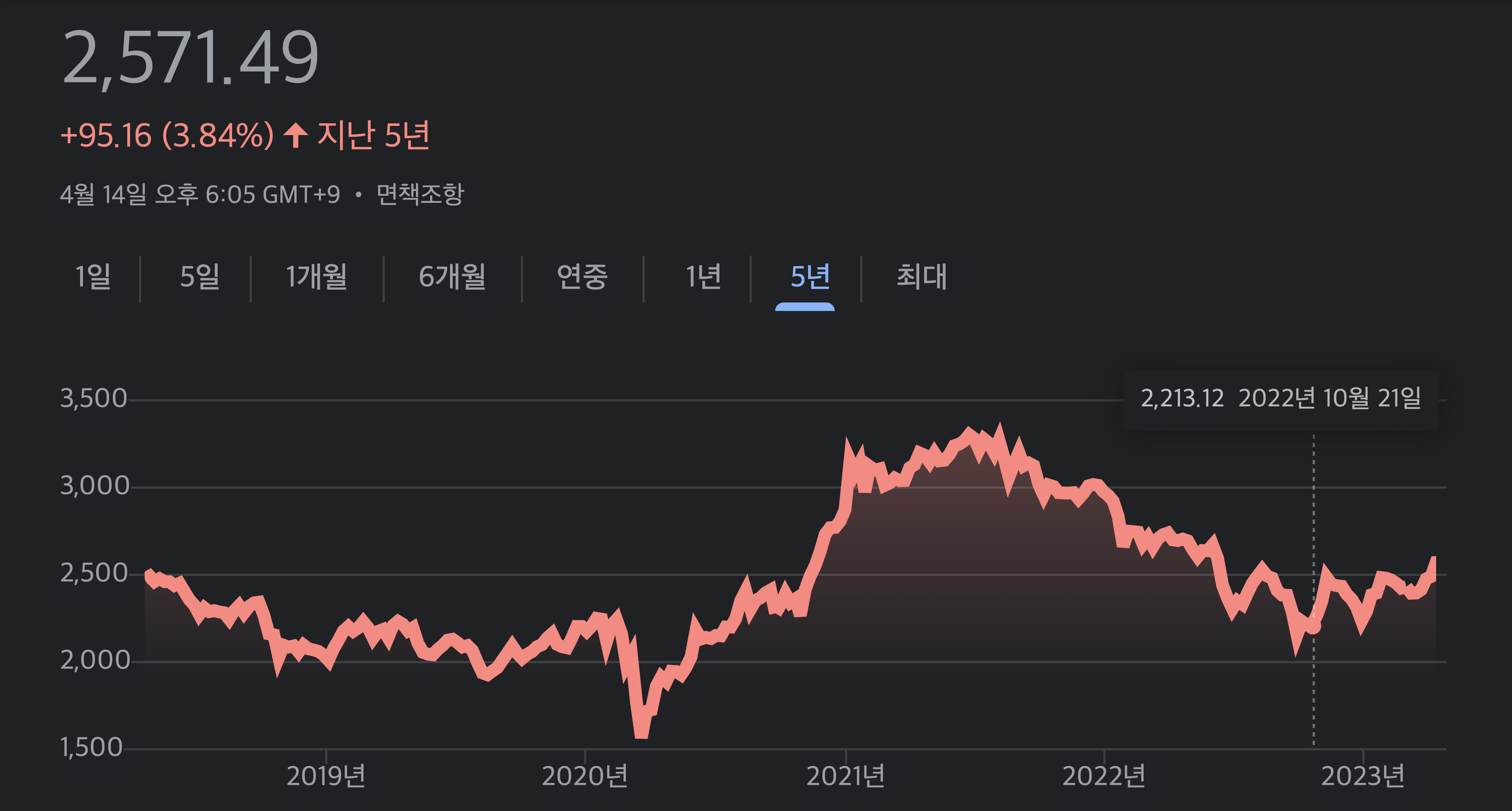 아래의 그림은 코스피 지수의 추이를 '시간 시각화' 형태로 나타낸 것이다. 2020년 초에는 기존 트렌드와는 다르게 급격하게 지수가 감소한 부분을 확인할 수 있다. 이러한 그래프를 통해 해당 시점에 '코로나19(COVID-19)' 초기 당시 인해 주식 시장에서 자본이 많이 빠져나갔음을 확인할 수 있다.