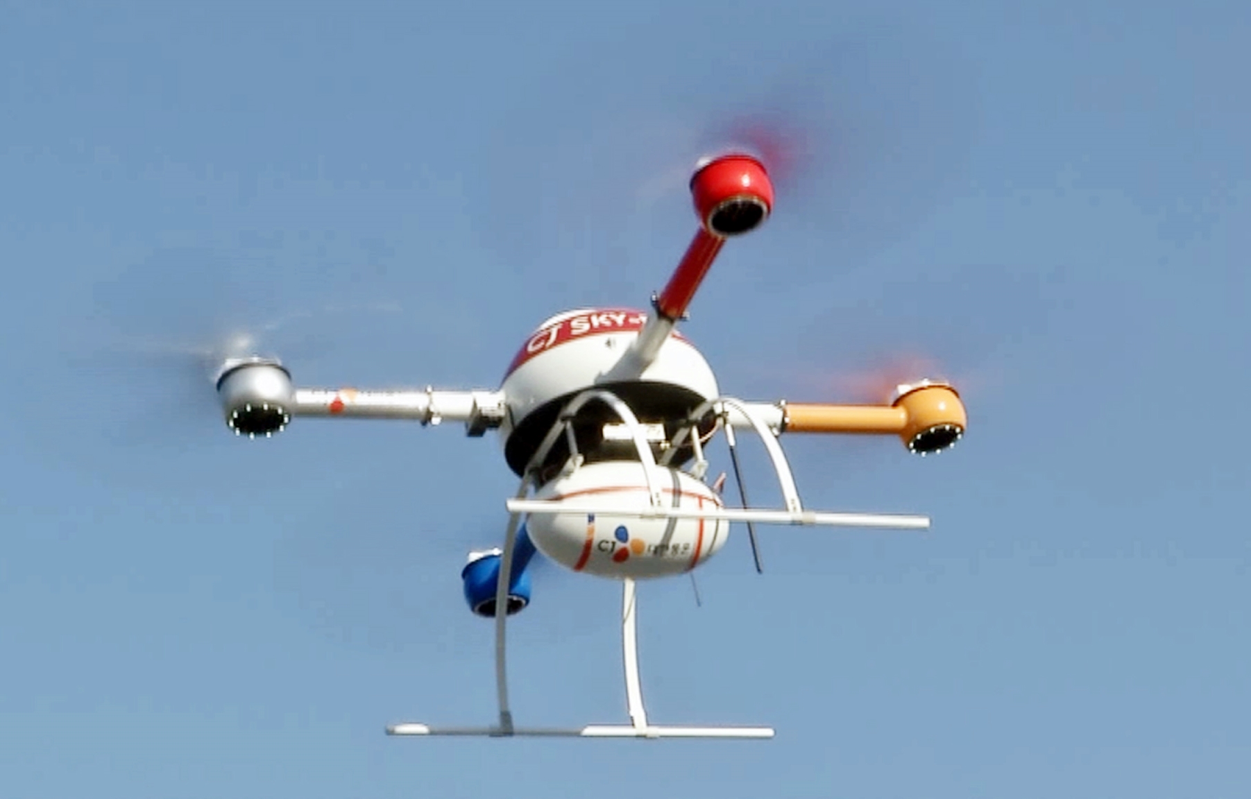 'CJ 대한통운'은 2016년 4월 '드론 추락 감지 기술 및 낙하산 자동장치'와 '화물 자동 하강 장치'를 공개했다. 또 독일의 회전익무인헬기 등 산업용 드론 개발 전문업체 Microdrone과 협력하여 물류 운반용 드론 'CJ 스카이도어(CJ SKY-DOOR)'를 개발했다. 'CJ 스카이도어(CJ SKY-DOOR)'은 3엽 날개가 장착된 4개의 로터를 통해 초속 18m 속도 비행이 가능하다.