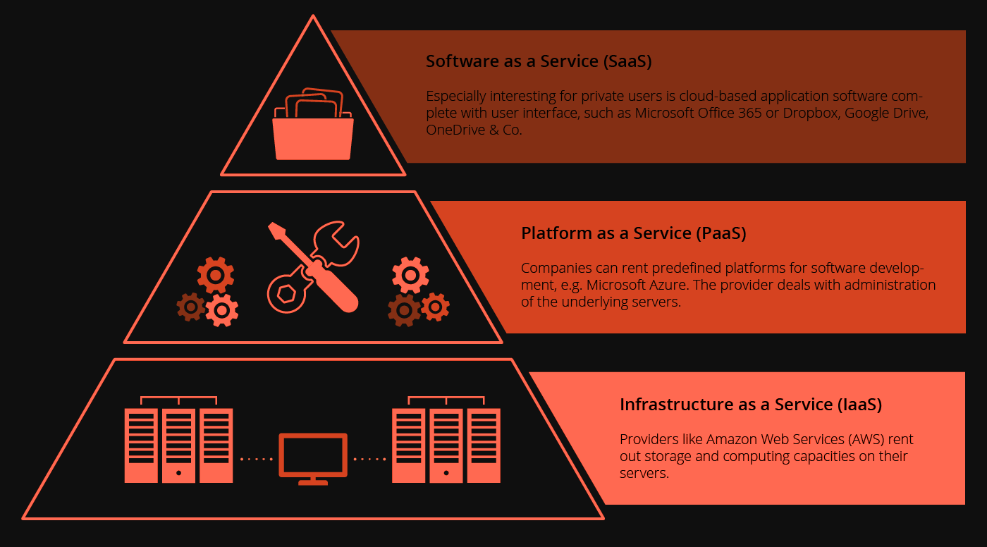 '클라우드 서비스(Cloud Service)'는 '클라우드 컴퓨팅(Cloud Computing)' 기술의 서비스 모델에 따라 다양하게 나뉜다. 이에 클라우드 서비스는 'IaaS(Infrastructure as a Service)', 'PaaS(Platform as a Service)', 'SaaS(Software as a Service)'로 분류된다.