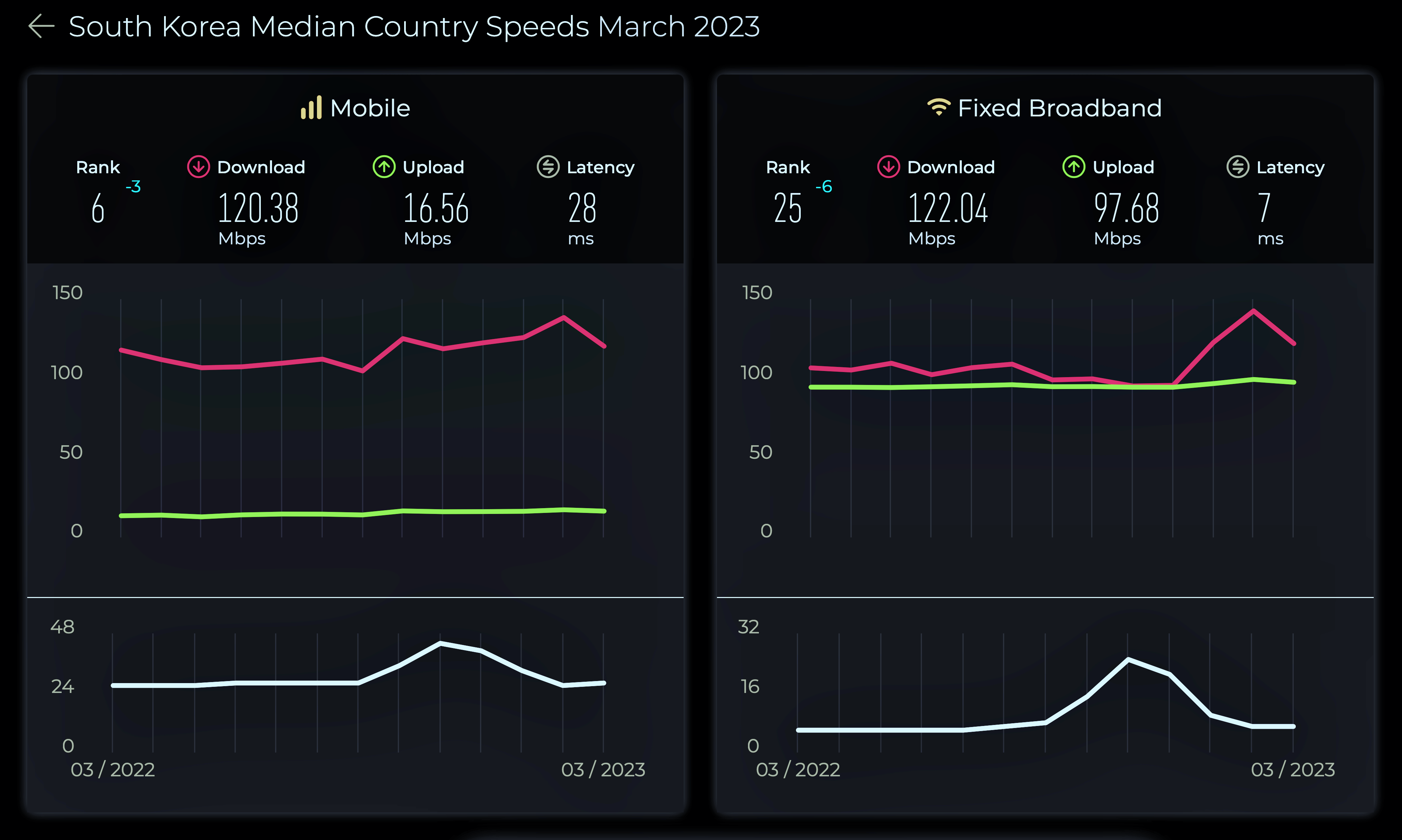 한국의 인터넷 속도 (2023년 3월 기준) (측정: 스피드 테스트) 3. '실감형 콘텐츠' 주요 기술