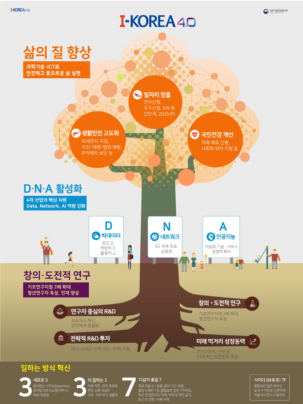 4차 산업혁명이 도래함에 따라, 급변하는 패러다임에 대응하기 위해 한국 정부는 주요 핵심 기술인 인공지능 분야에 대한 전략 수립 및 대규모 'R&D(Research and Development)'를 추진 중에 있다. 대통령 직소 4차 산업혁명위원회가 '4차 산업혁명 대응계획(2017년 11월)'을 확정·발표한 가운데, 국내 인공지능 R&D 경쟁력 확보를 위한 'AI R&D 세부 전략(2018년 05월)'을 발표하여, 인공지능 기술로 인한 새로운 변화를 창출하기 위한 청사진을 제시하고 있다. 또한 '데이터 가치사슬 전주기 화성화', '세계적 수준의 인공지능 혁신 생태계 조성', '데이터 인공지능 융합 촉진'으로 데이터·인공지능 선도국가로 도약하고자 하는 혁신성장 전략투자의 일환으로 '데이터·AI 경제 활성화 계획(2019년 1월)'을 발표하였다. 이 계획은 이후 5년 동안 '데이터의 수집·유통·활용 전 단계 활성화', '세계적 수준의 인공지능 생태계 조성', '산업 전 분야의 인공지능 간 융복합을 촉진'하는 9개 정책 과제를 포함하고 있다.