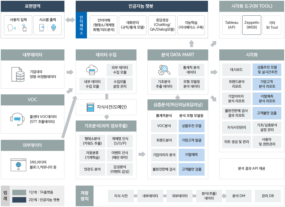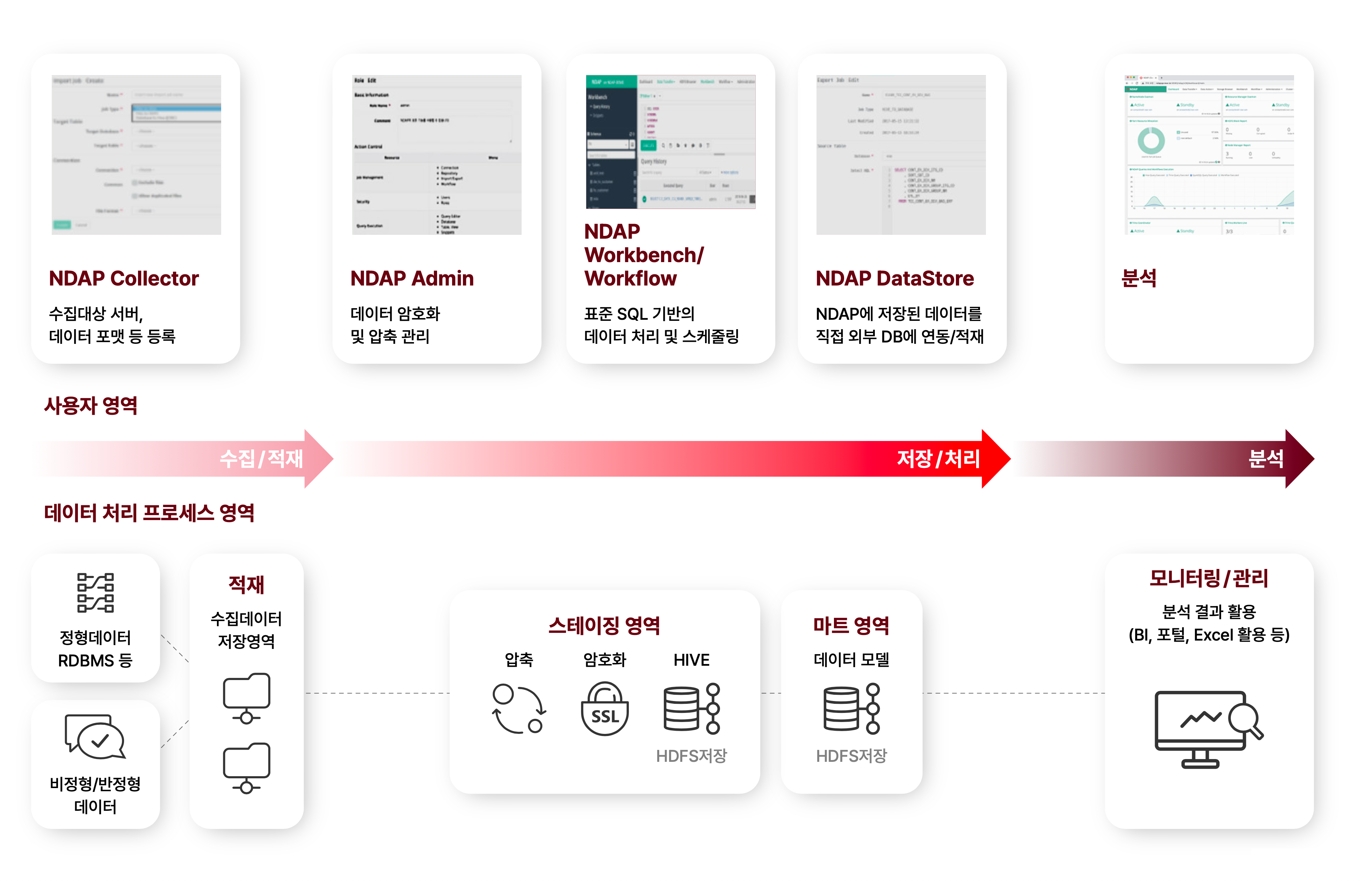 - 빅데이터 수집부터 분석, 시각화 및 인프라 관리까지 단일 솔루션으로 처리 가능한 플랫폼