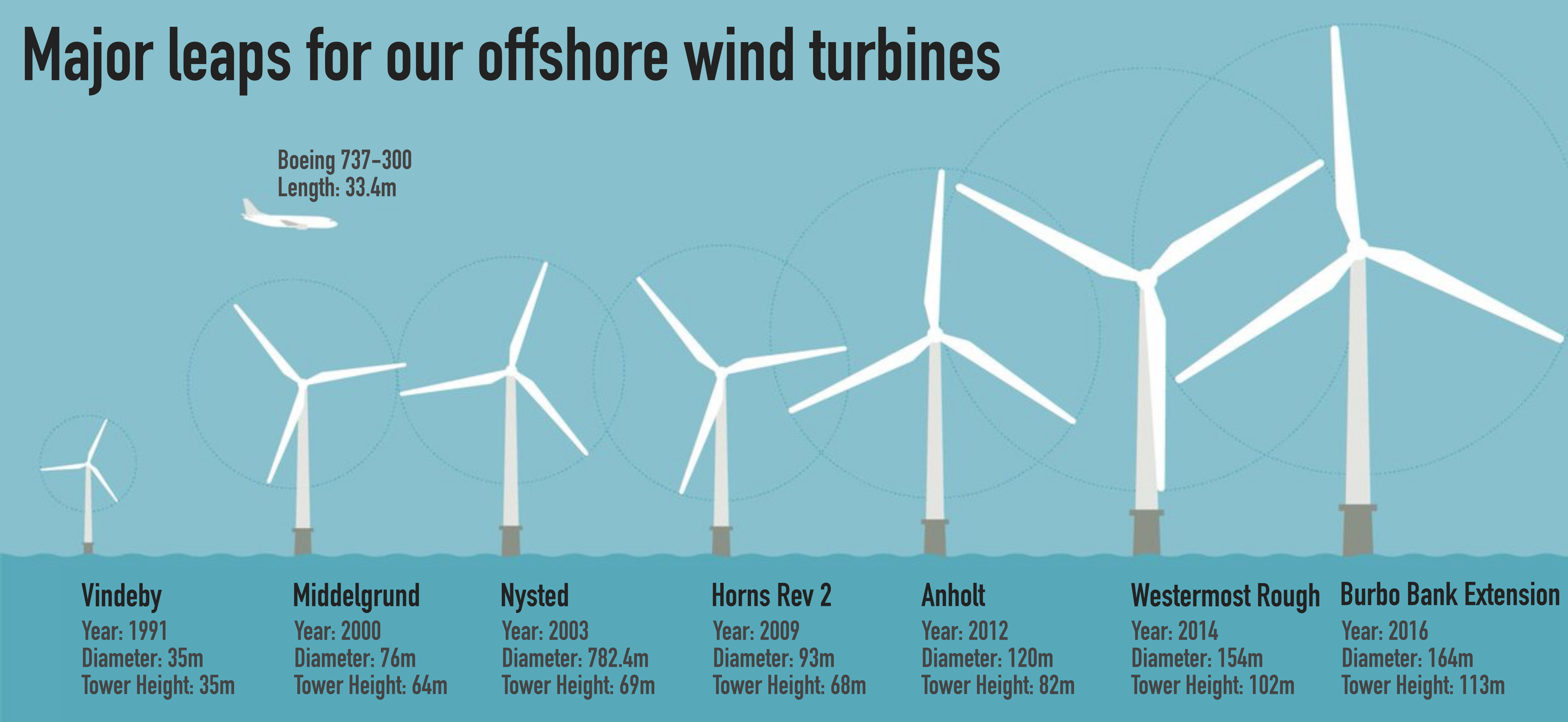 풍력 터빈의 출력은 '블레이드가 회전하는 면적(Swept Area)' 및 '풍속(Wind Speed)'에 비례한다. 그래서 풍력 터빈 제조사는 고출력을 얻기 위해 블레이드의 길이를 늘리고, 지면 저항이 없는 상층부까지 타워의 높이를 높이고 있으며, 부품의 중량과 체적을 시스템적으로 최적화하는 설계 기술을 적용 중이다. 이와 같이 풍력 터빈을 대혀오하할 경우, 에너지 효율의 증대 및 단위 용량당 건설비 및 설비비 절감이 가능하기 때문이다.