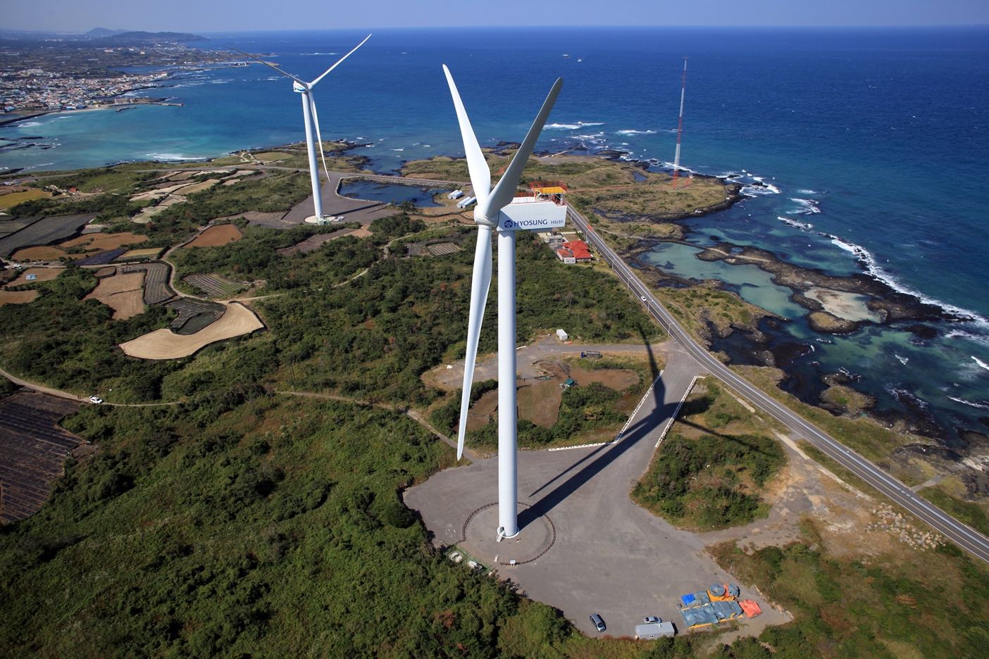 '효성중공업'은 2018년에 효성으로부터 인적분할되어 설립된 기업이다. 1990년대 중반부터 풍력발전 사업에 착수하였으며, 주요 부품인 증속기, 발전기, 제어기, 타워 등에서 우수한 기술력을 보유하고 있다. 효성중공업은 2005년 국내 최초로 750kW '간접 구동형(Geared Type)' 풍력 터빈을 개발하였으며, 2007년에는 2MW 풍력 터빈의 상용화에 성공함으로써 신뢰성과 품질력을 입증받았다. 또한 5MW 해상풍력발전용 터빈 'HS139-5MW'을 2014년 제주 김녕 국가 풍력 실증 단지에 설치하여, 2015년 독일 DEWI-OCC로부터 국제 형식 인증을 취득하였다.