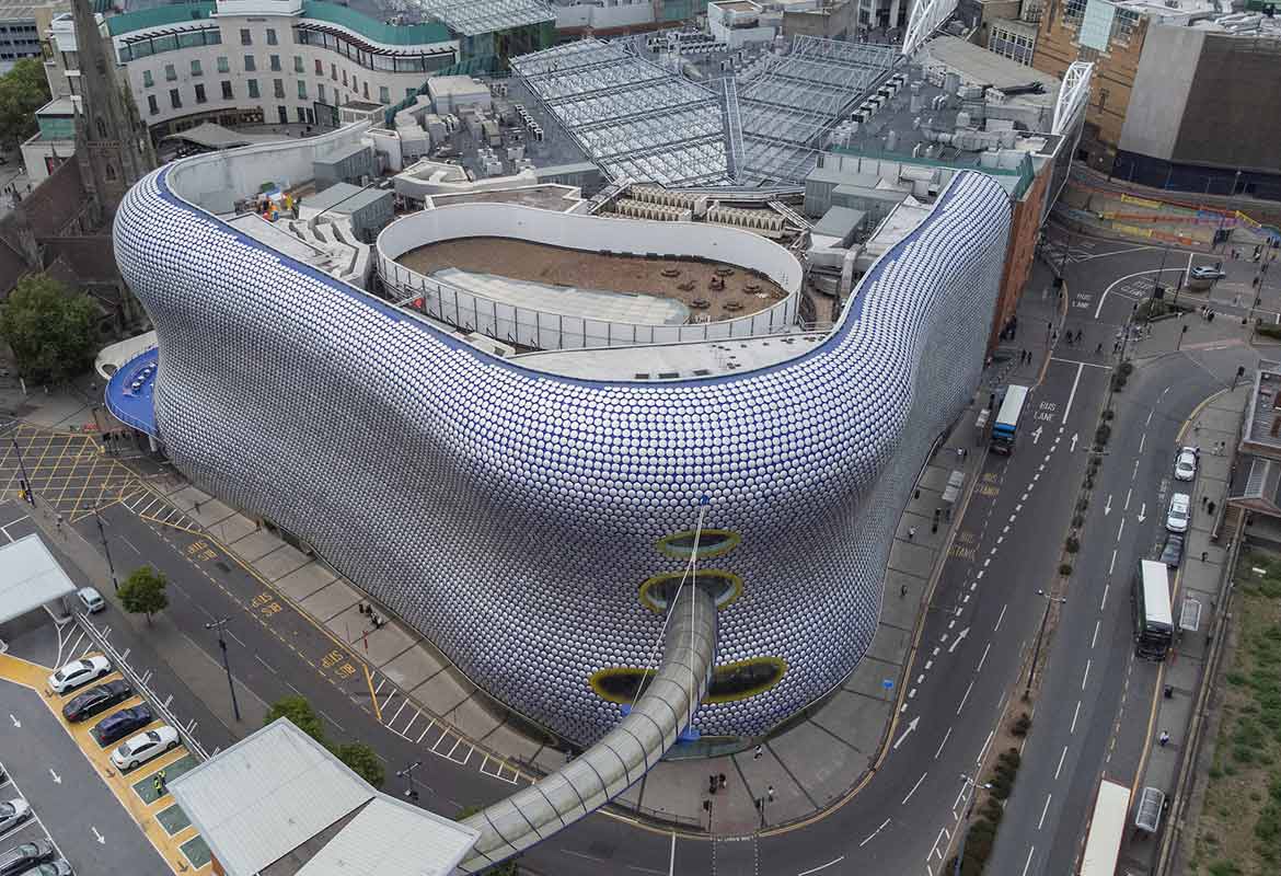'셀프리지(Selfridges)'는 2003년에 영국의 '버밍엄(Birmingham)'에서 문을 연 4층의 쇼핑센터이다. 벽면과 천장 면이 이어진 유기적인 형상이다. 보행자용 통로가 노란색 창에 빨려 들듯이 설치되어 있다. 15000장의 알루미늄 원반을 붙인 파란색 외벽은 파충류의 비늘처럼 보인다.