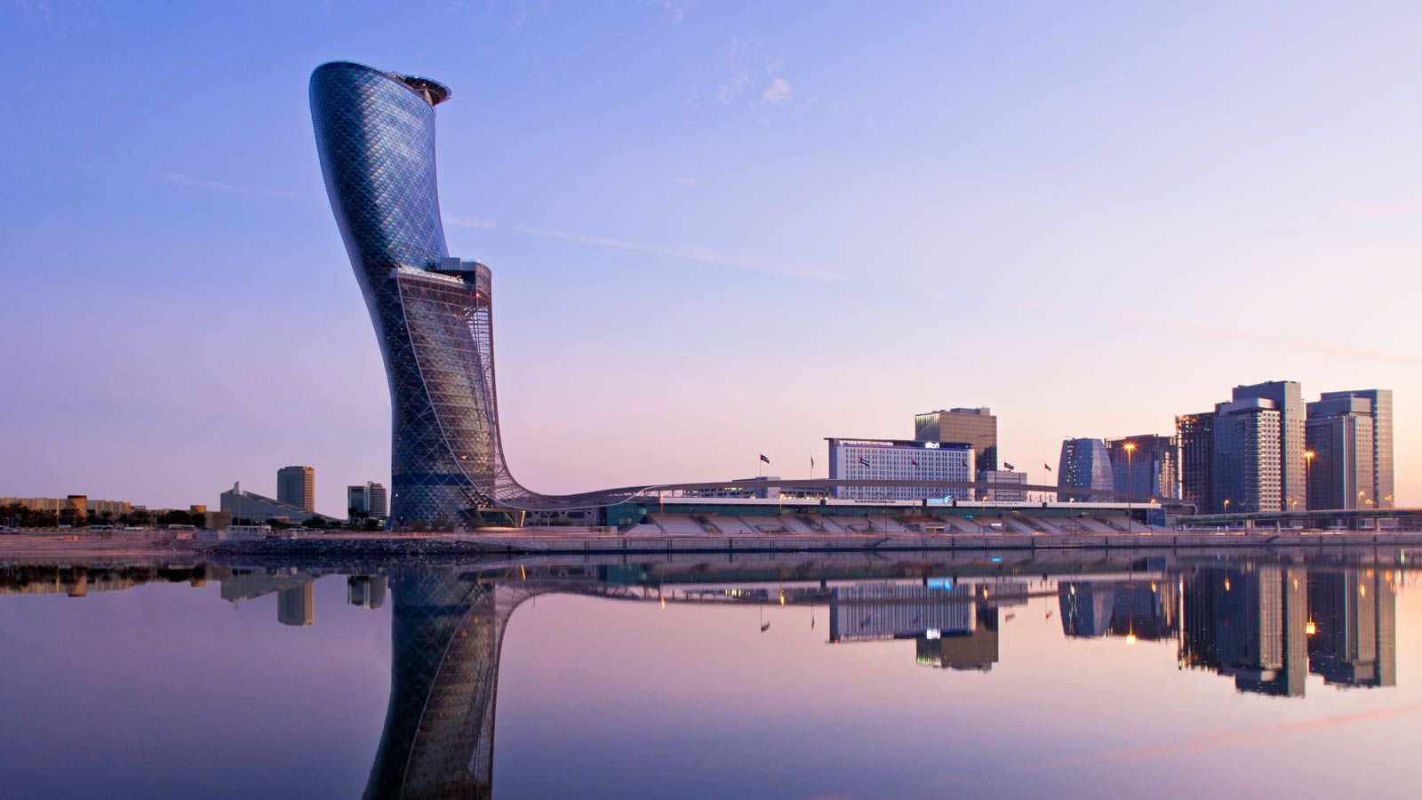 '아랍에미리트(UAE)'의 수도 '아부다비(Abu Dhabi)'에 세워진 '캐피털 게이트 타워(Capital Gate Tower)'는 2011년에 완성된 높이 165m, 36층의 초고층 건물이다. 호텔과 사무실이 입점해 있으며, 전면을 유리로 덮은 매끄러운 외관이 우아하다. 19층부터 이웃 건물에 걸쳐 설치된 하얀 그물 모양의 구조물은 빛 가리개 역할도 한다.