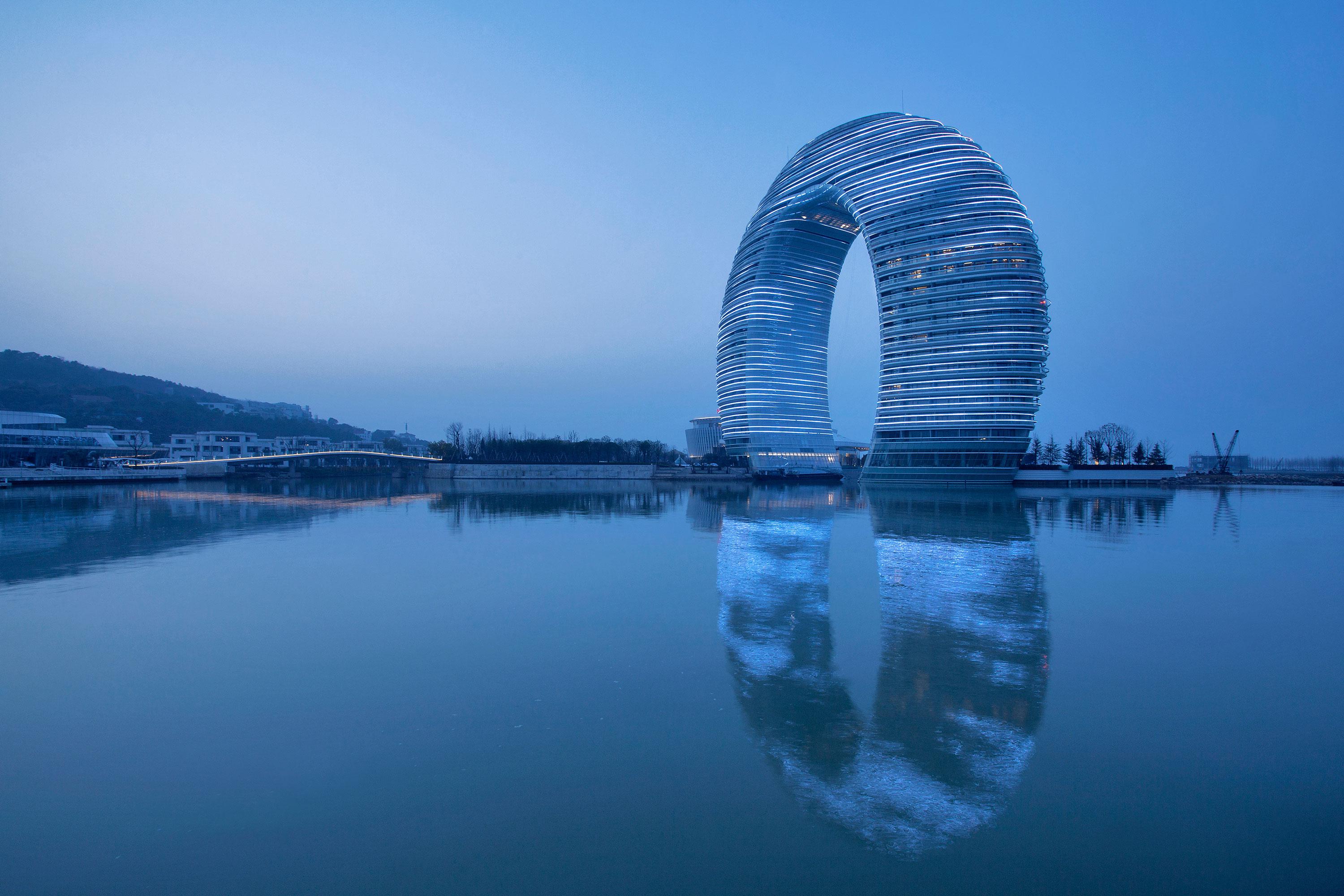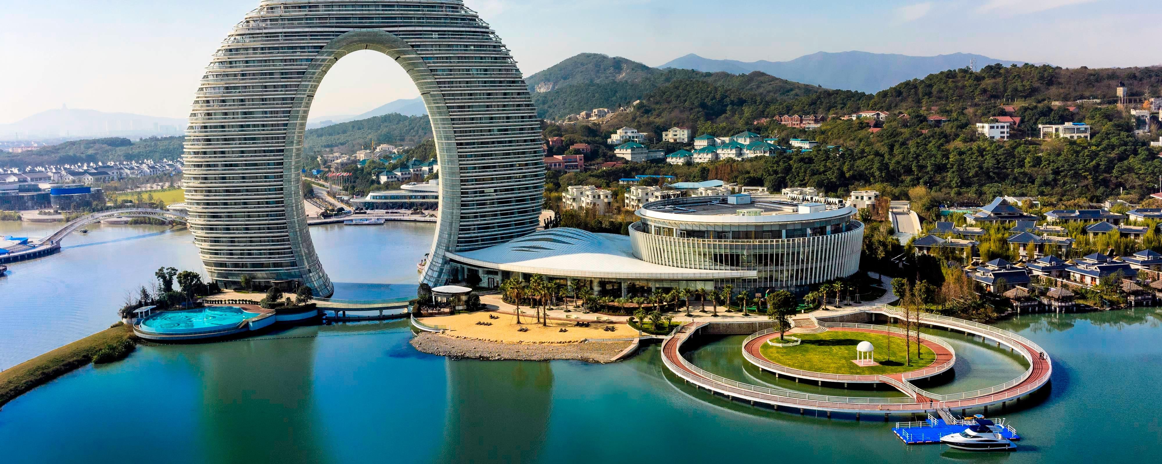'쉐라톤 후저우 핫 스프링 리조트(Sheraton Huzhou Hot Spring Resort)'는 중국 장쑤성 후저우시의 거대한 호수 근처에 세워진 초고층 호텔이다. '후저우시'는 운하와 '아치교(무지개다리)'를 볼 수 있는 아름다운 관광지이다. 2012년에 문을 연 이 호텔은 높이 102m의 27층 건물로, '도넛 호텔'이라는 애칭이 있다.