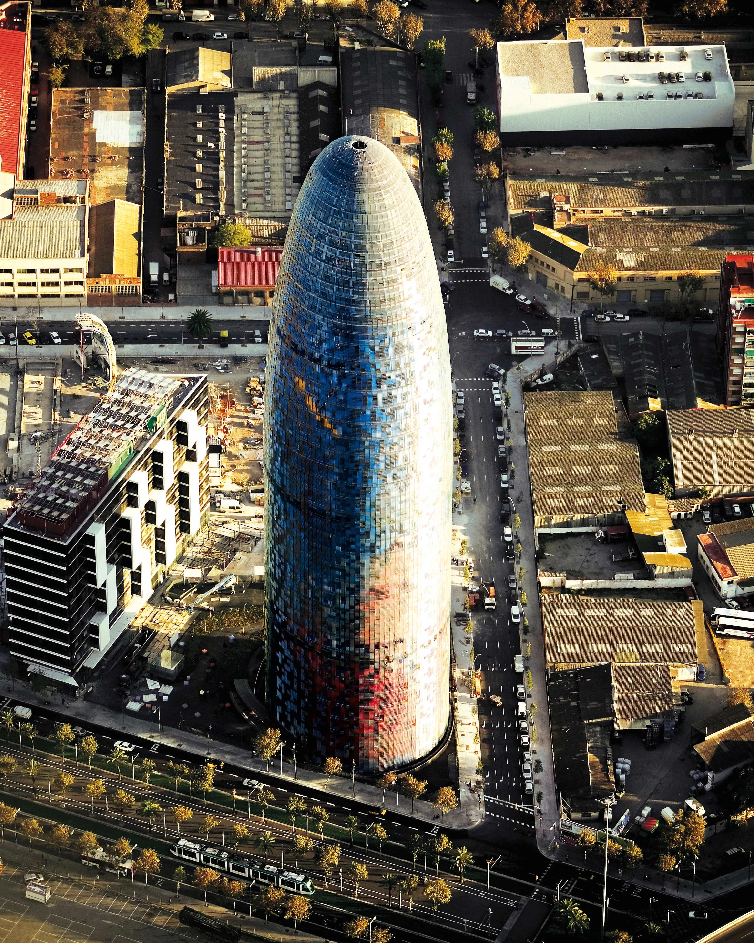 '아그바르 타워(Agbar Tower)'는 바르셀로나에 세워진 높이 144m의 초고층 빌딩이다. 철근 콘크리트로 만든 벽에 창이 불규칙하게 달려 있다. 표면에는 불꽃과 불을 형상화한 컬러 패널이 붙어 있다. 가장 바깥쪽에 설치된 유리 블라인드는 기온 센서와 연동해 개폐되어 냉난방 에너지를 최소화한다.