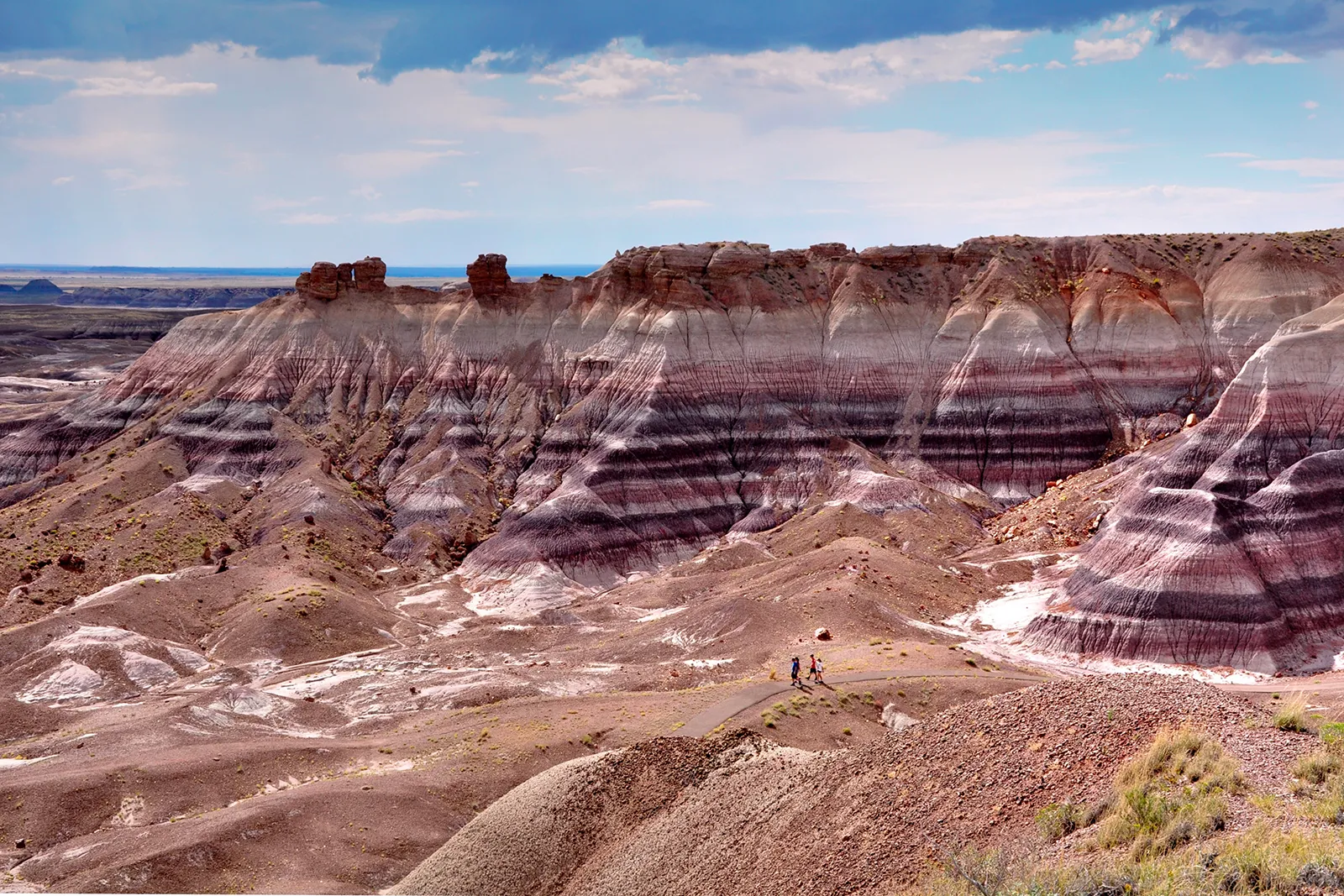 '페인티드 사막(Painted Desert)'은 애리조나주 북동부의 국립공원 북부에 위치한다. 전체 길이 약 242km, 넓이 19400km2의 페인티드 사막에는 '메사'라는 고립 구릉이 늘어서 있다. 메사는 선명한 빨간색, 파란색, 하얀색, 울금색의 '혈암', '이회토', '사암'으로 이루어진 지층이 침식된 것으로, 퇴적된 지층이 다채로운 색깔의 줄무늬처럼 보인다. 밤낮의 기온 차가 심해 식물은 거의 자라지 않는다. 사막 서쪽으로는 '그랜드캐니언(Grand Canyon)'이 이어진다.