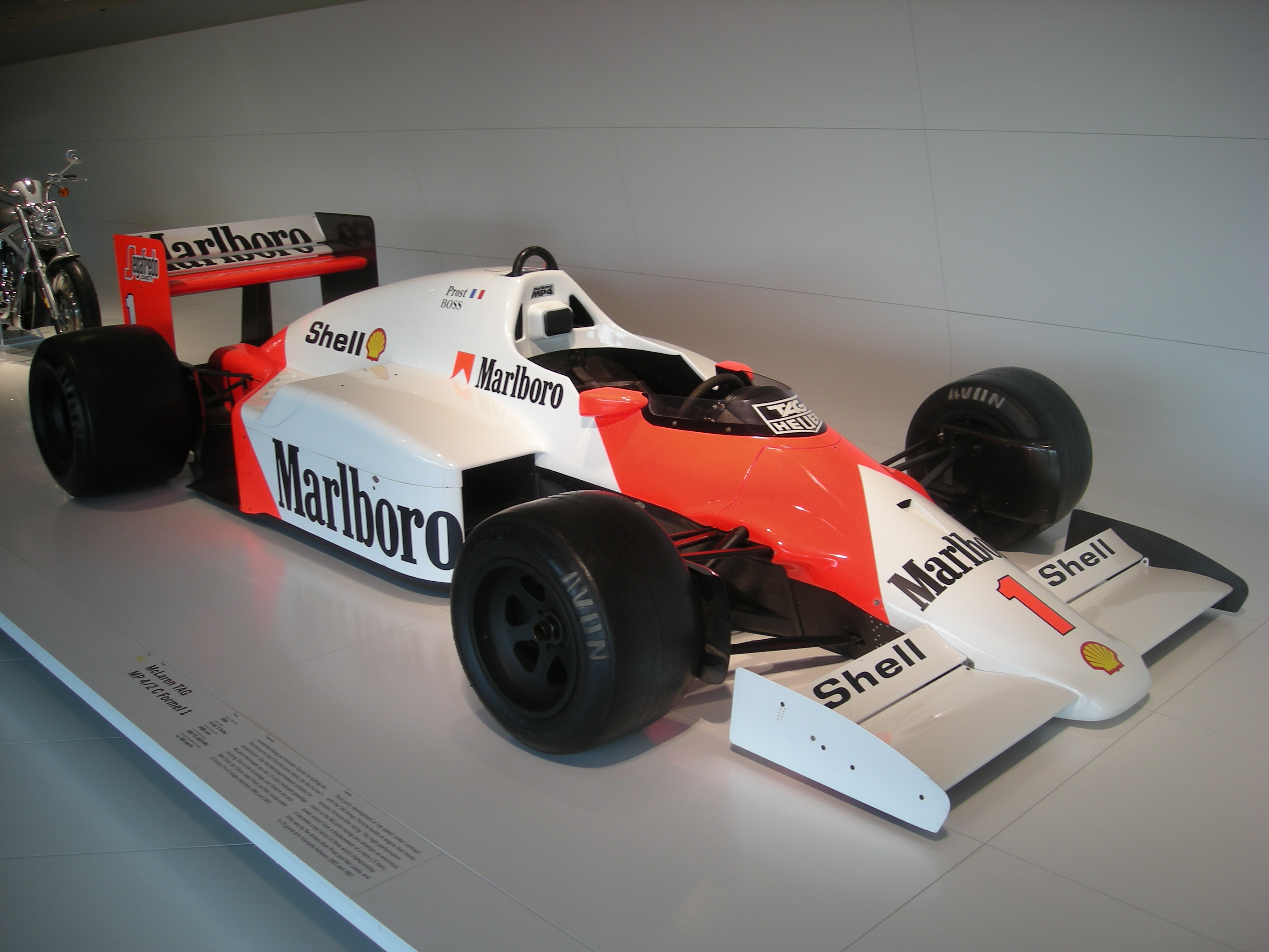 '맥라렌 MP4/2(McLaren MP4/2)'는 개량을 거듭하면서 1984년부터 1986년까지 사용된 '레이스 카'다. 팀으로서의 챔피언에 2번, 드라이버로서 3차례의 챔피언을 자랑한다. 당시는 차체 바닥 공기의 흐름을 이용한 '그라운드 이펙트 카(Ground Effect Car)' 설계가 금지되었기 때문에, 앞뒤에 붙인 윙을 사용해 '다운 포스'를 얻었다. 차체 전체를 낮게 하고 중심을 낮춰 코너를 도는 속도를 높였다. '테크닉 아방가르드(TAG)'로부터 자금을 지원받아 '포르쉐'에 개발을 위탁한 배기량 1.5L의 V형 6기통 터보 엔진을 탑재했다.