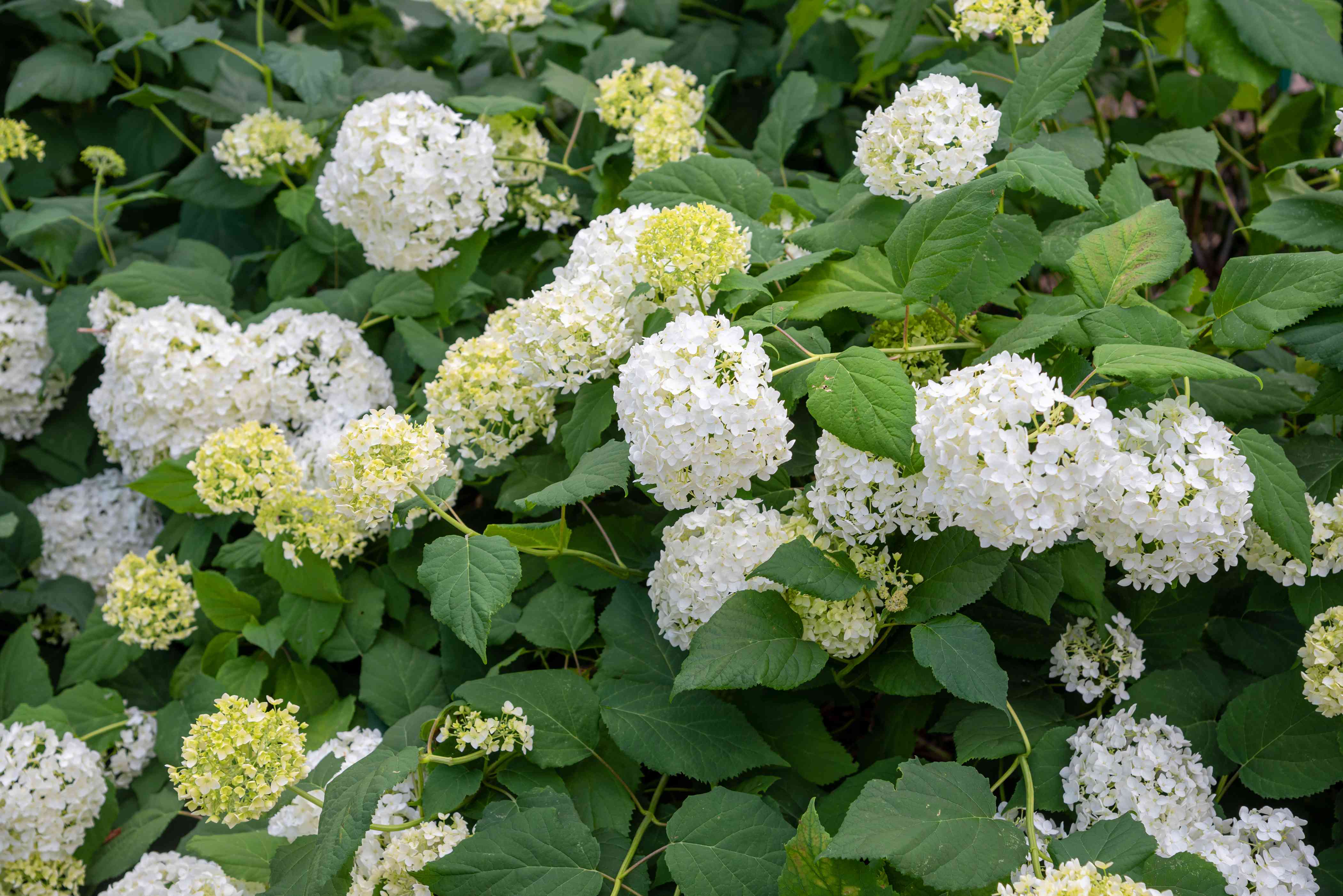 '미국 수국'은 미국에서 자생하는 '공 모양'의 수국으로, '애너벨(Annabelle)'이라고도 불린다. 곧게 뻗은 가지의 끝에 희고 작은 장식화가 빽빽하게 피어 있는 것이 특징이다.