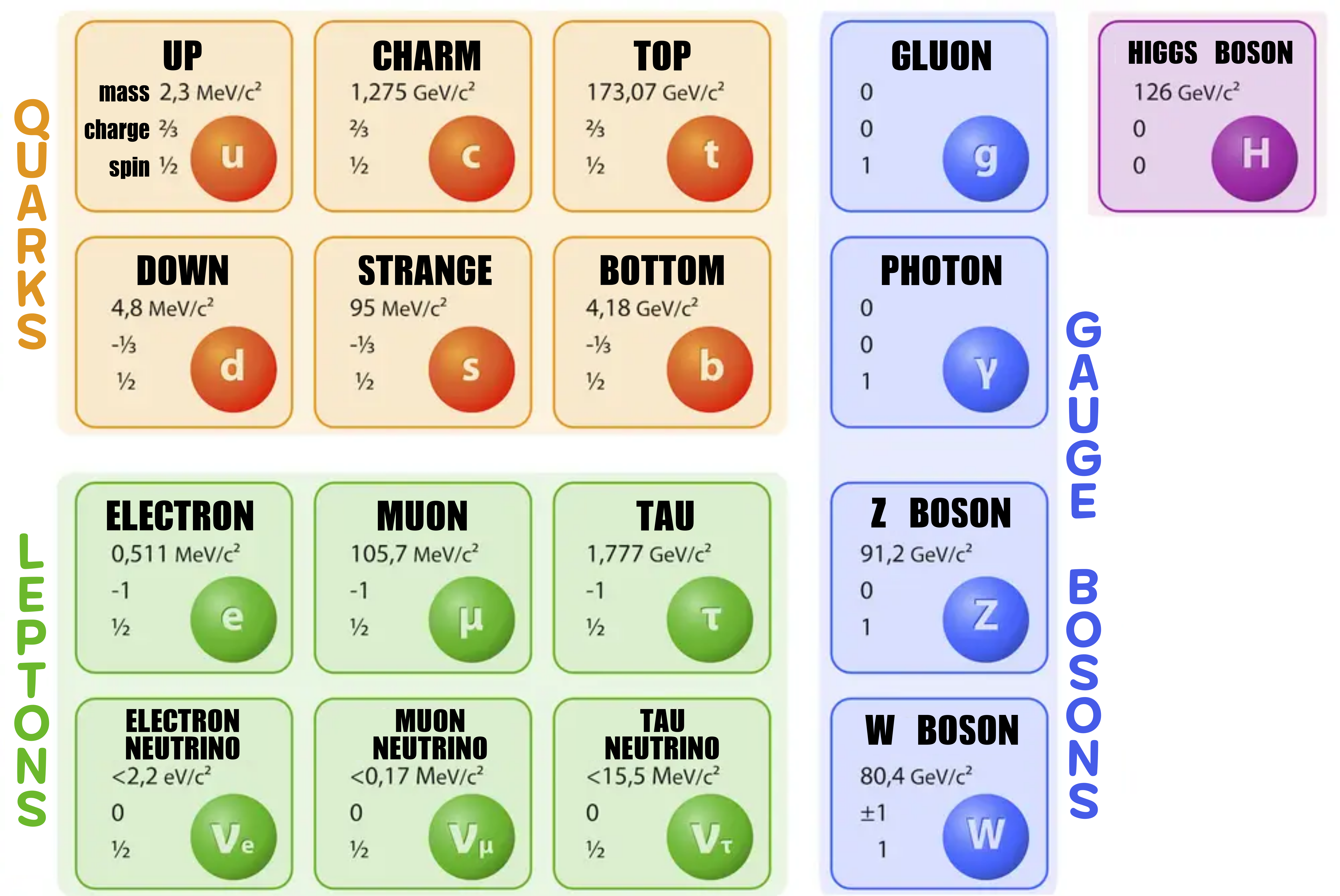 하지만 질량이 큰 입자를 가속시키려면 고에너지가 필요하고, 그에 걸맞는 가속기가 필요하다. '톱 쿼크(Top Quark)'가 가장 늦게 발견된 이유는 '톱 쿼크'가 질량이 큰 소립자였기 때문이었다. '톱 쿼크'의 질량은 금의 원자핵 정도라고 생각된다. '톱 쿼크'는 '테바트론(Tevatron)'가속기에서 검출 실험을 통해 발견되었다. 단, 일상생활 수준에서는 무거운 입자는 안정되게 존재할 수가 없어 다른 입자로 붕괴해 버린다. 그래서 일상생활 수준에서 원자를 구성하고 있는 소립자는 쿼크의 '업 쿼크(Up Quark)', '다운 쿼크(Bottom Quark)'와 렙톤의 '전자(Electron)'이다.