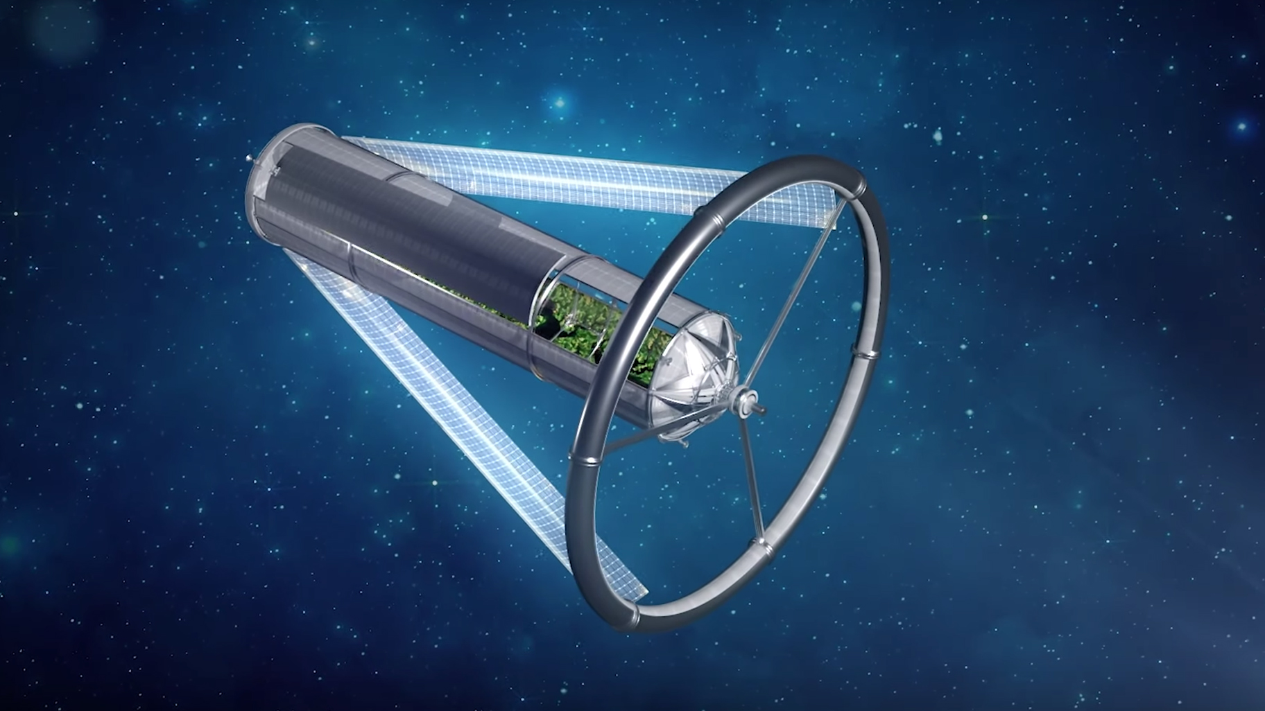 - 낮과 밤: 그러면 '오닐 실린더'에 낮과 밤은 없는 걸까? 실린더의 외벽이 열리면 창문이 되는데, 3개의 거대한 창문과 내부 반사경을 이용해 인공적으로 낮과 밤을 만들 수 있다. 창문이 열리면 낮이 되고 창문이 닫히면 밤이 되는 것이다. 이처럼 태양광을 받는 방식도 있지만 중심축 주변에 인공 태양을 설치하여 빛을 공급받는 밀폐식 방식도 있다.