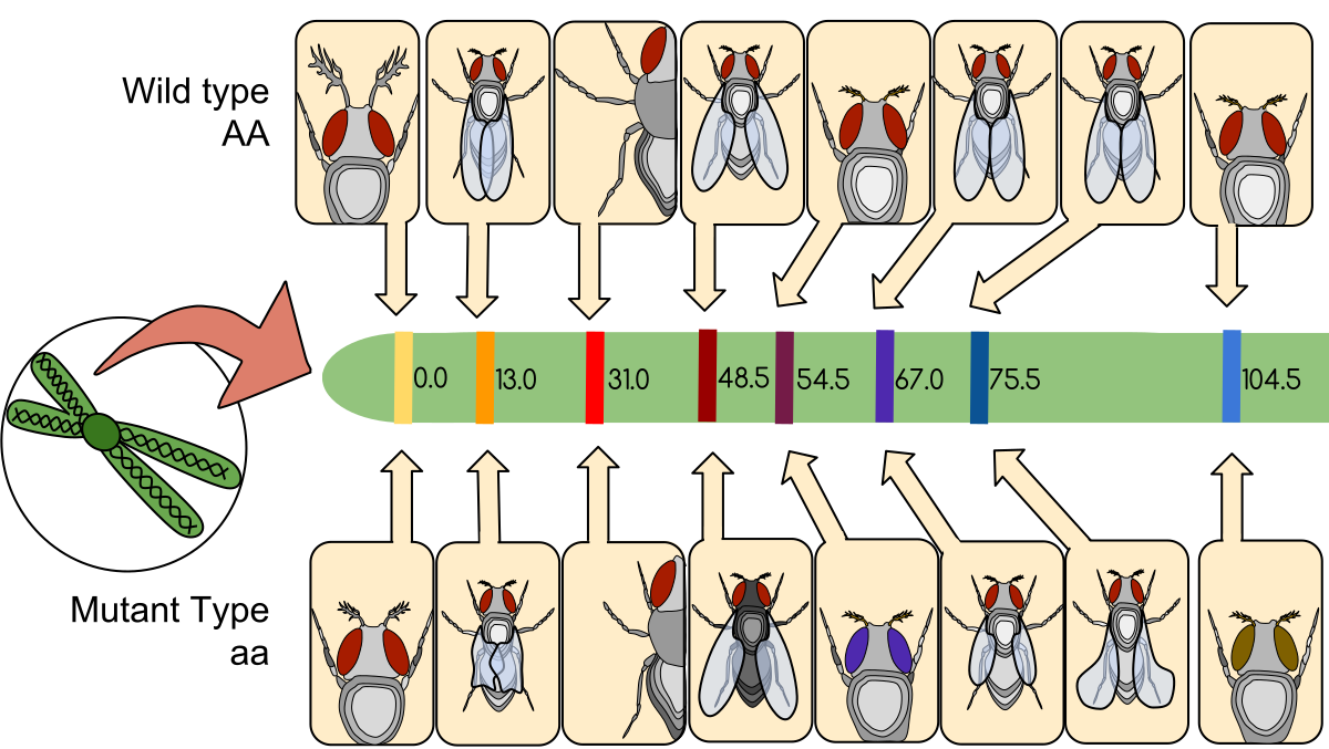 이 생각이 옳다면, 하나의 염색체에서 멀리 떨어진 위치에 있는 유전자끼리일수록 바뀌어 들어가 뿔뿔이 흩어질 확률이 높아지고, 연쇄적으로 전달될 빈도가 적어진다. 모건은 이 현상을 통해, 어느 유전자가 어느 위치에 있는지를 나타내는 '염색체 지도'를 작성했다. 모건은 노랑초파리의 눈의 색깔과 모양, 날개의 모양 등 각각의 형질을 나타내는 유전자가 염색체의 어디에 위치하는지를 표시해 나갔다. 이리하여 유전자가 염색체라는 물체에 놓여 있음이 명확히 증명되었다. 모건은 이 업적을 인정받아 1933년에 노벨 의학 생리상을 받는다.