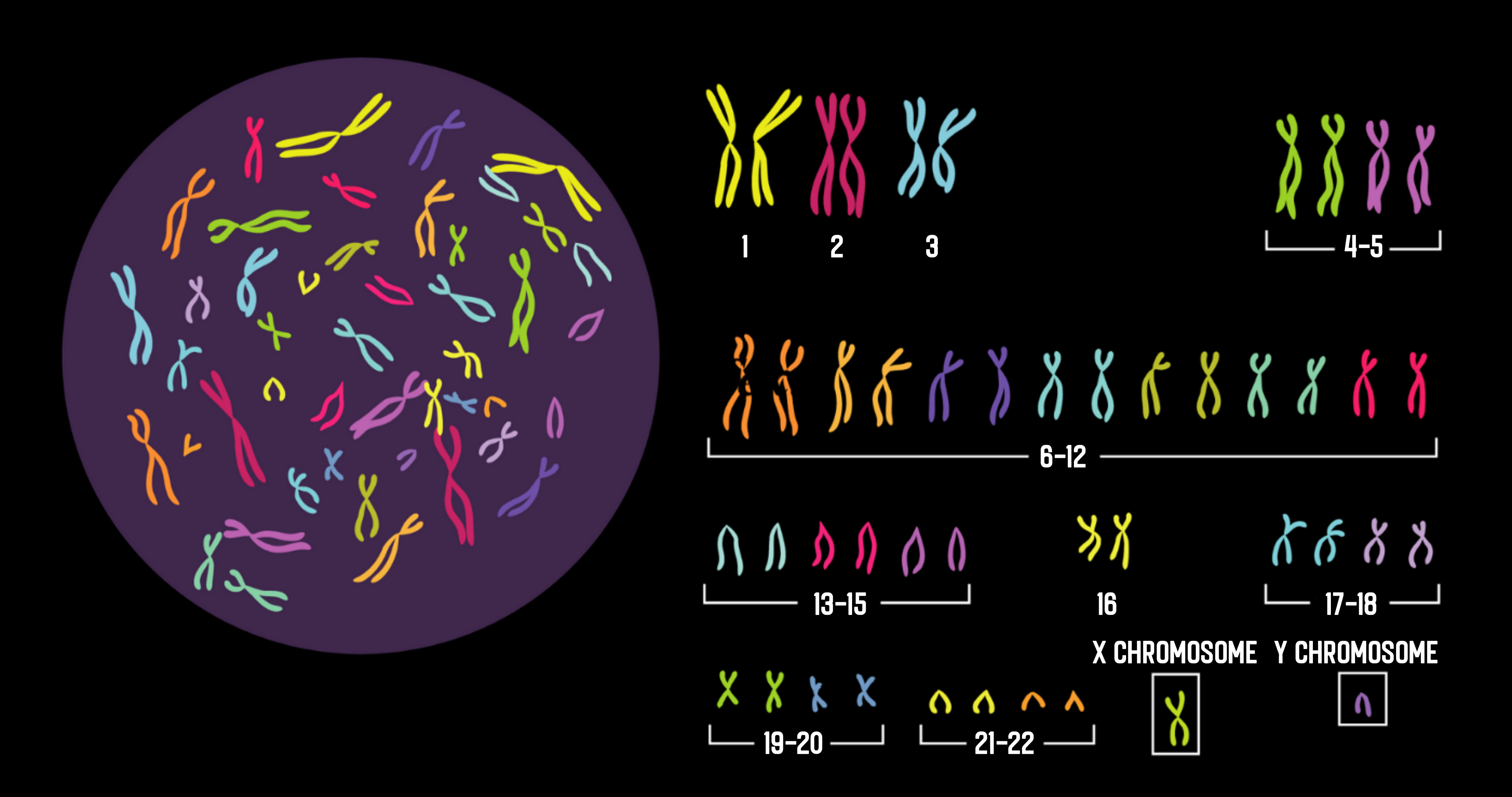 분열하는 세포를 광학 현미경으로 관찰하면, DNA가 막대 모양으로 응축한 '염색체(Chromosome)'를 볼 수 있다. 생물의 종에 따라 1개의 세포가 가진 염색체의 수가 다른데 인간은 46개의 염색체를 갖는다. 우리는 아버지로부터 23개, 어머니로부터 23개라는 형태로, 부모로부터 정확히 절반씩의 염색체를 물려받는다. 부모 각각으로부터 받은 23개의 염색체 가운데 22개는 '상염색체'라고 하며, 크기순으로 1번부터 22번까지 번호가 붙여져 있다. 염색체가 클수록 그 속에 들어있는 유전자의 수 또한 많은 경향이 약간 보이긴 하지만 반드시 그런 것은 아니다. 아버지로부터 받은 염색체와 어머니로부터 받은 염색체로 번호가 같은 것끼리는 '상동 염색체'라고 하며, 같은 위치에 같은 유전자가 존재한다. 46개의 염색체에서 44개의 상염색체를 뺀 나머지 2개의 염색체는 '성염색체'라고 한다. '성염색체'에는 X 염색체'와 'Y 염색체'라는 전혀 다른 2종의 염색체를 가지고 있다. 남성은 X 염색체와 Y 염색체를 1개씩 가지고 있으며, 여성은 2개의 X 염색체를 가지고 있다. X 염색체와 Y 염색체는 겉모습은 물론, 포함되어 있는 유전자의 종류도 크게 다른다. 이 차이가 남자와 여자의 차이를 낳는 것이다.