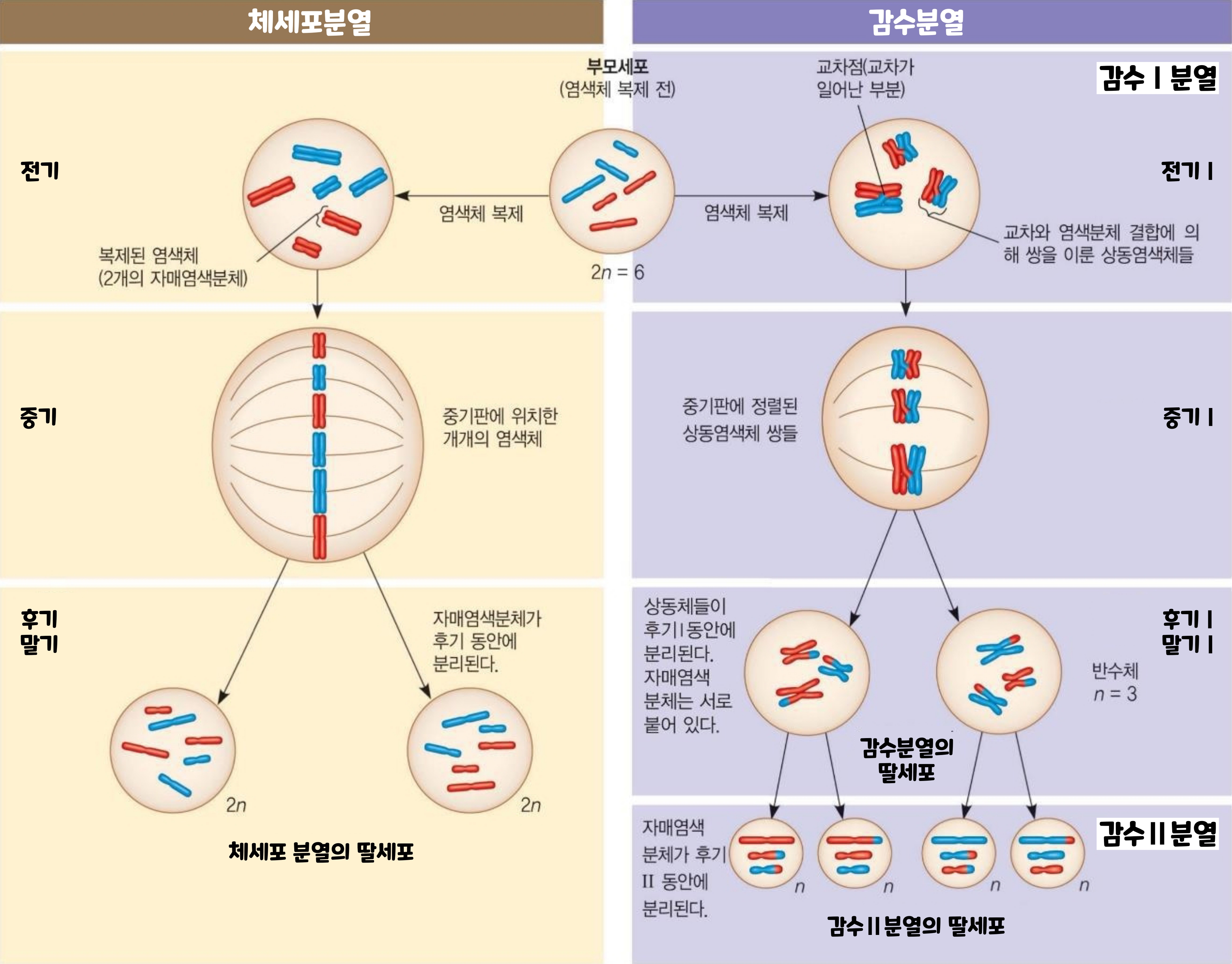 사람의 세포는 각각 46개의 염색체를 가지고 있다. 하지만 정자와 난자라는 생식세포는 각각 23개의 염색체만 가지고 있다. 만약 정자와 난자가 46개의 염색체를 가지고 있다면, 수정란은 92개나 되는 세포를 가지게 될 것이다. 그래서 정자와 난자는 23개의 염색체만 가지고 있어야 한다. 결국 생식세포를 만들 때는 염색체를 절반으로 줄여야 한다.