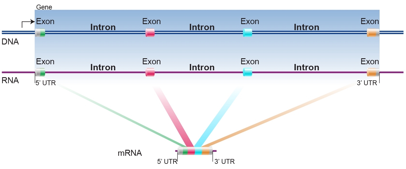 DNA를 복사해 만들어진 RNA는 그대로 핵 바깥으로 운반되는 것은 아니다. RNA가 핵 바깥으로 운반되기 전에는 '편집'이 이루어진다. DNA의 정보 안에는 단백질을 만드는데 무의미한 정보가 곳곳에 있다. 그래서 DNA를 복사한 RNA에도 무의미한 정보가 그대로 남아있다. 이 부분을 '인트론(intron)'이라고 한다. RNA를 단백질의 설계도로 완성시키기 위해서는 인트론을 제거한 후 의미가 있는 부분인 '엑손(Exson)'만을 연결해야 한다. 이 편집 작업을 'RNA 스플라이싱(RNA Splicing)'이라고 한다.