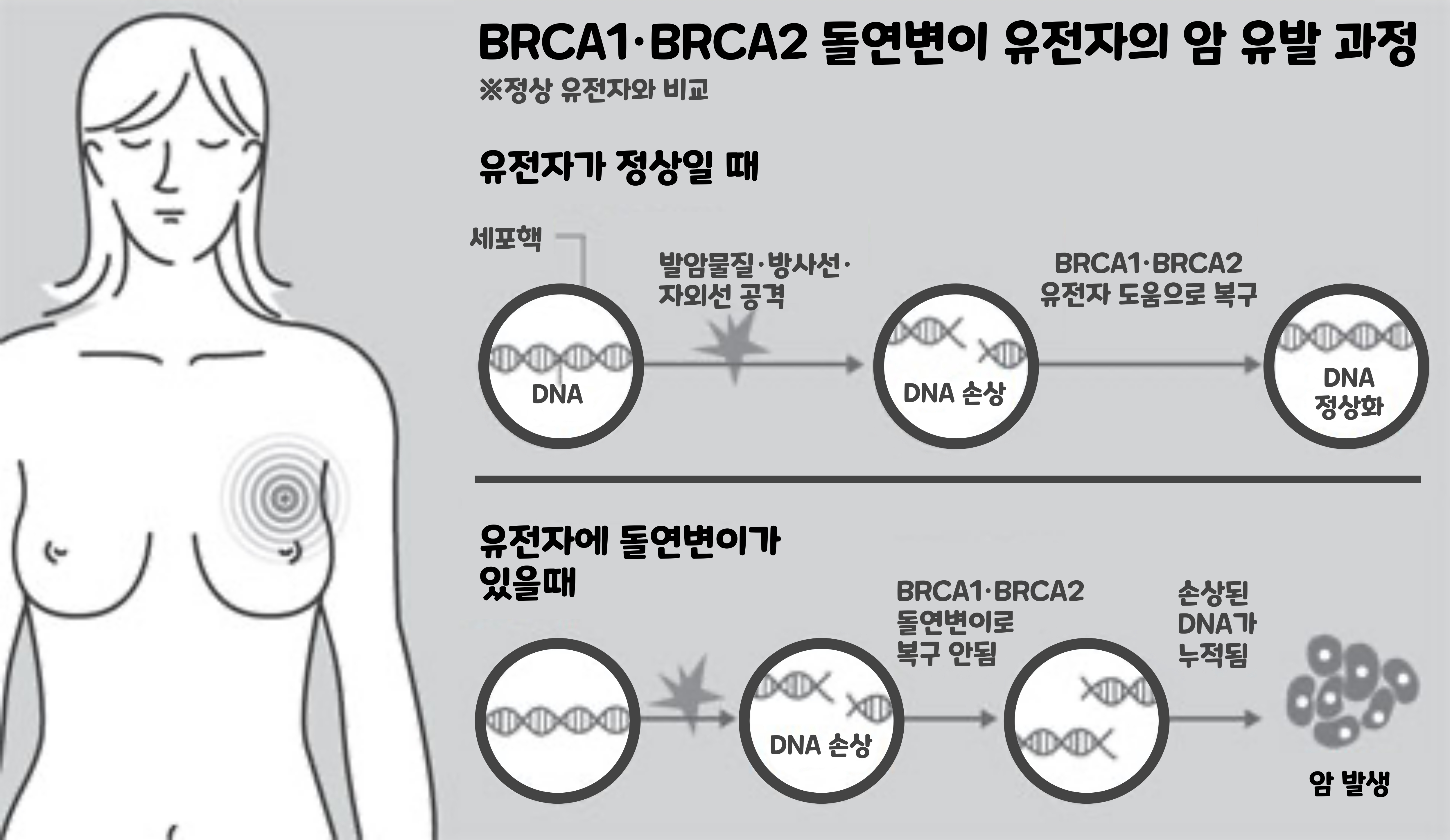2013년에 유명 배우 '안젤리나 졸리(Angelina Jolie, 1975~)'는 유방암 위험 제거를 위해 유방 제거 시술을 하였다. 안젤리나 졸리는 선천적으로 유방암 관련 유전자인 BRCA 유전자 돌연변이를 가지고 있어, 유방암에 걸릴 확률이 89%나 되었다. 미국 여성이 평생 유방암에 걸릴 확률이 약 10%이니, 이는 상당이 높은 확률이었다. BRCA 변이는 유방암 뿐만 아니라 난소암도 증가시키는 것으로 알려져 있는데, 안젤리나 졸리의 어머니와 이모는 각각 난소암과 유방암으로 사망했다. 이에 졸리는 예방 조치로 유방절제 시술을 받았고, 유방함 발병 확률을 5%로 낮추었다. 안젤리나 졸리의 유방절제술은 미국의 시사주간지 타임지 2013년 5월 27일 자에 실려, 이와 비슷한 상황의 다른 여성들에게 영향을 끼쳤다.