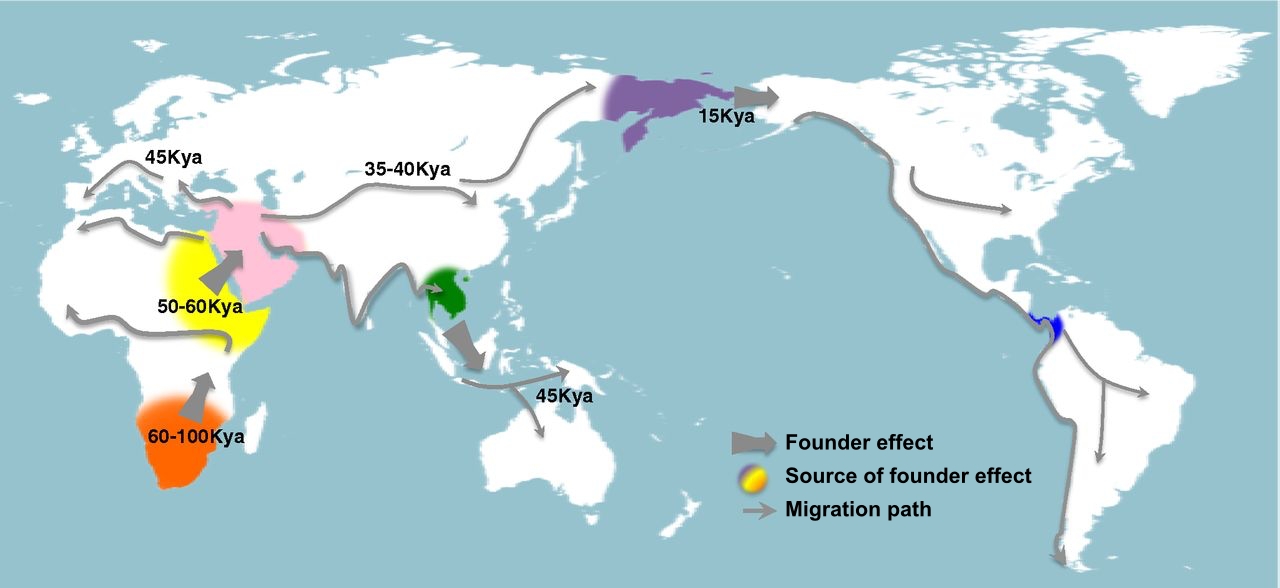 우리의 DNA에는 진화의 역사가 고스란히 담겨있다. 이 DNA를 분석하면 인류 조상들의 이주 경로를 거의 정확하게 복원할 수 있다. 이 분석에 의하면 지금으로부터 약 6만 년 전에 아프리카에 살던 인류가 사방으로 흩어지는 '인류의 대분산'이 일어나기 시작했다. 아프리카를 떠난 인류는 중동을 거쳐 중앙아시아까지 진출했다.
