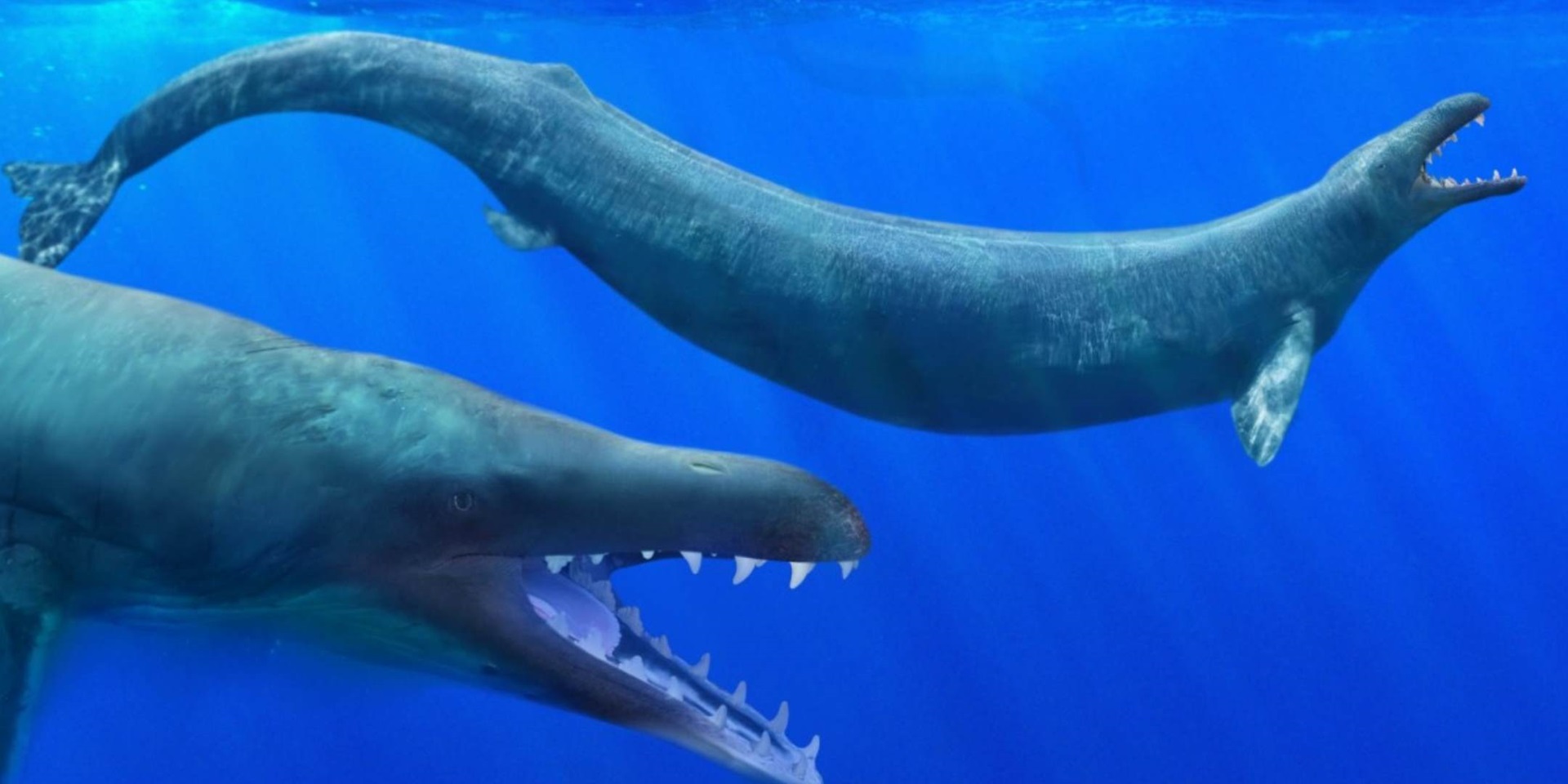 이때의 바다 포유류 중에는 전체 길이 19m의 고래 '바실로사우루스(Basilosaurus)'가 있다. 최후의 '원시 고래'의 일종으로 알려져 있는 '바실로사우루스'는 에오세인 약 3800만~3400만 년 전의 바다에서 바다의 제왕으로 군림했으며, 작은 얼굴과 가늘고 긴 몸통을 가지고 있다. 뱀장어와 같은 체형으로 느긋하게 꾸불꾸불 헤엄쳤으리라 생각된다.
