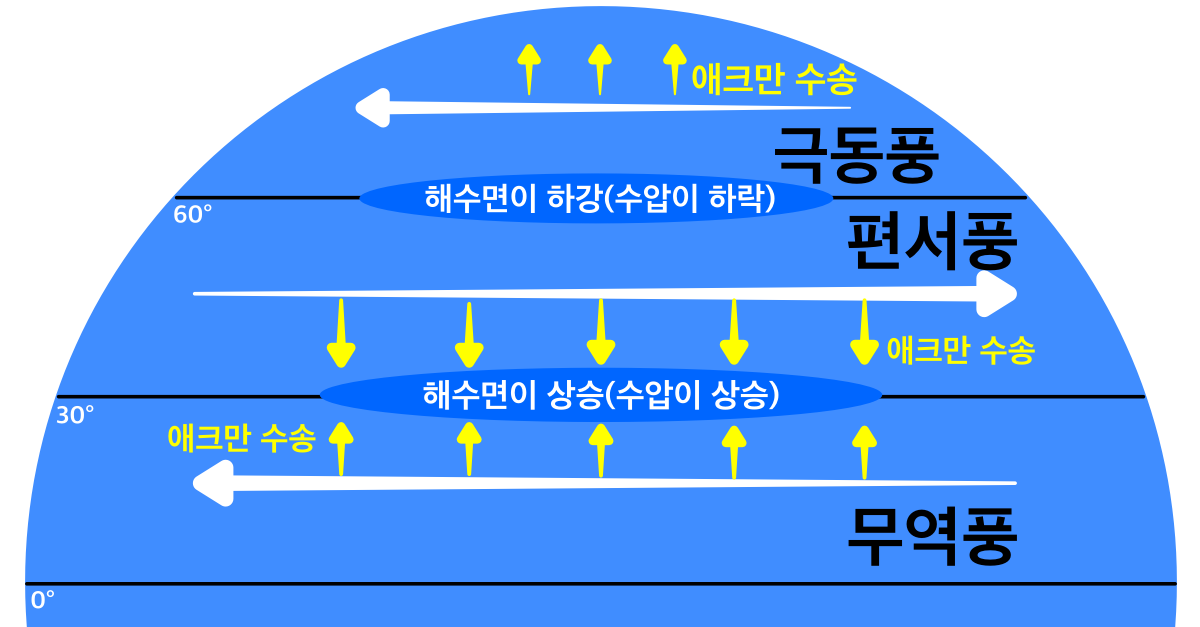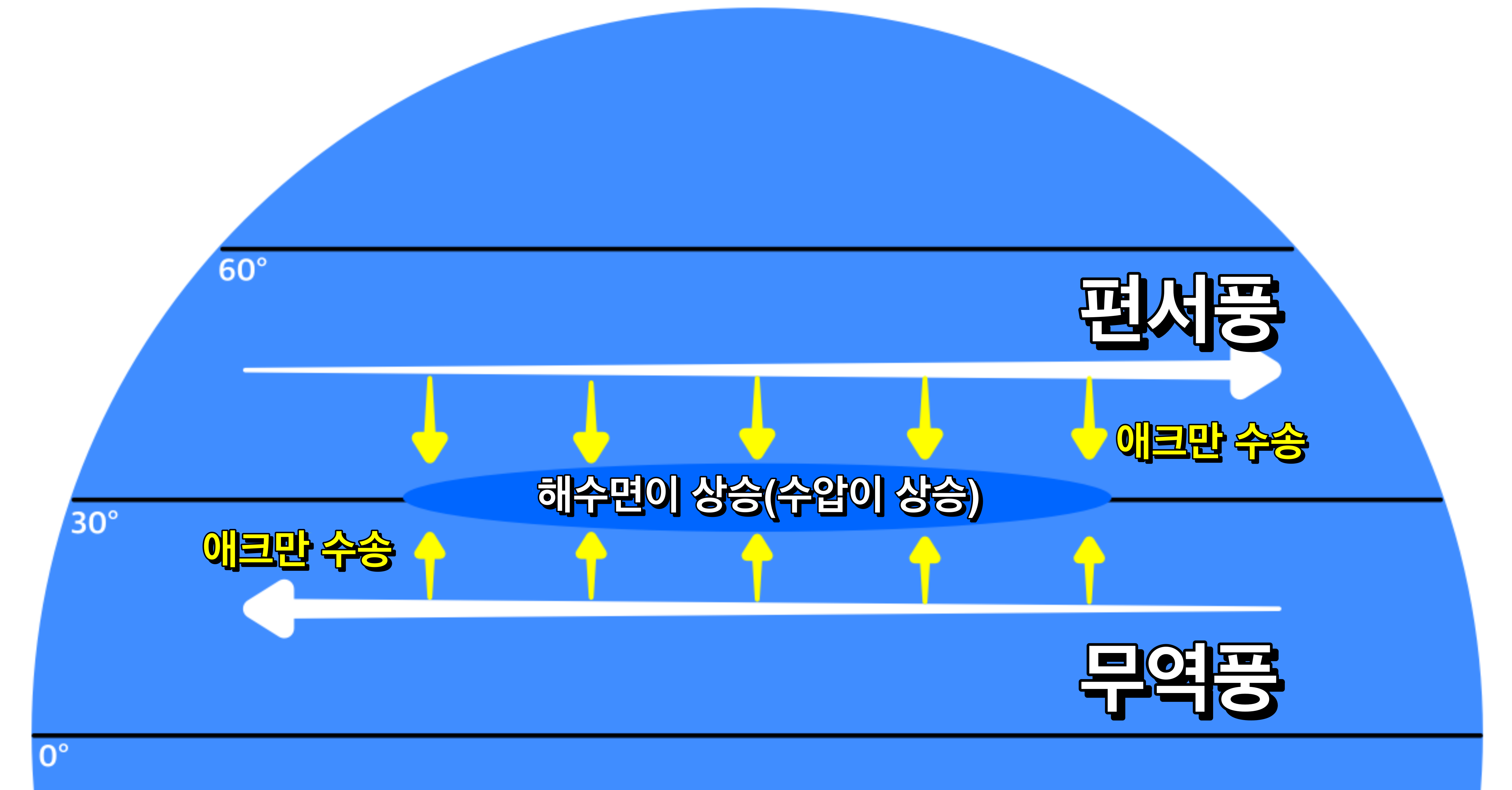애크만 수송과 해류 (무역풍과 편서풍 사이에 주목) 3-4. 서안 강화