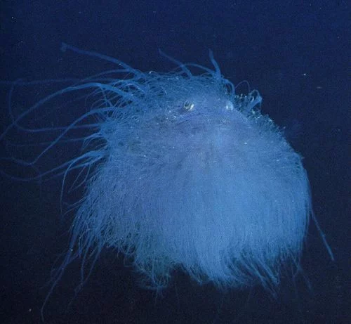 '긴수염낙지'는 마치 치마를 입은 것처럼 보이는 생물이다. 다른 낙지 종류와 마찬가지로 '누두'에서 물을 분사해 헤엄치며, 귀처럼 보이는 지느러미와 치마 모양의 부분으로 균형을 잡거나 방향을 조절한다. 그러한 유영 방법으로 때때로 느릿느릿 해저 부근을 헤엄쳐, 잠수 조사선의 관찰자의 시선을 빼앗기도 한다. 전 세계적으로 수심 2500~4200m에 분포한다.
