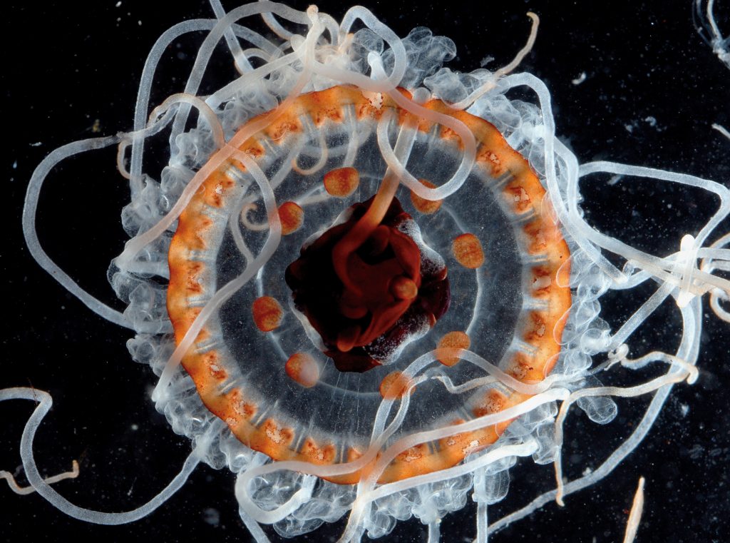 아름다운 유리 세공품처럼 생긴 이생물은 해파리의 일종이다.
