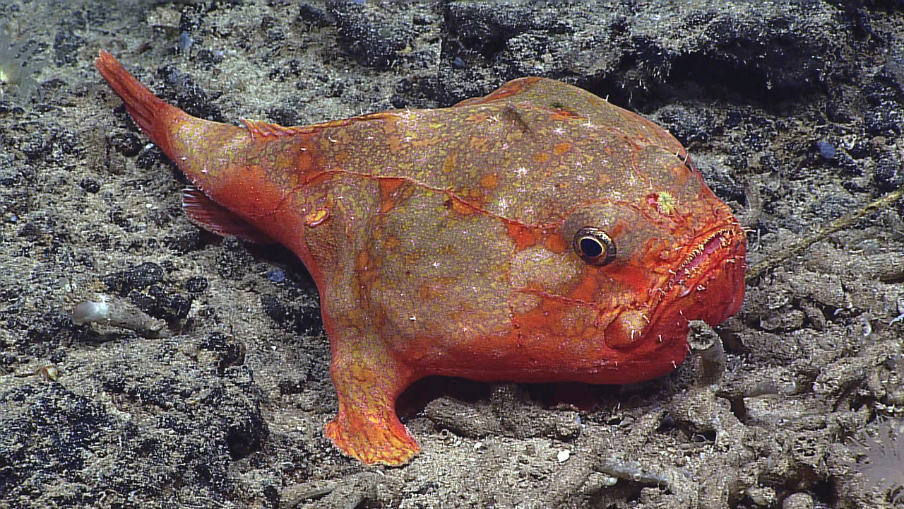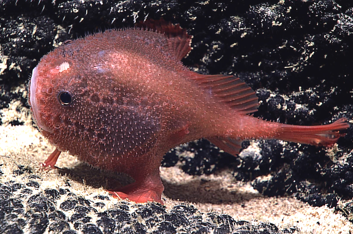 한 쌍의 배지느러미와 꼬리지느러미로 바다 밑에서 '네발로 기는 것' 같은 자세로 가만히 있는 경우가 많아, '삼각어'라고도 불린다. 눈이 퇴화되어 있으며, 그 대신 좌우로 벌어진 가슴지느러미가 주위를 탐색하는 안테나 역할을 하는 것을 보인다. 몸길이는 25cm 정도이다.
