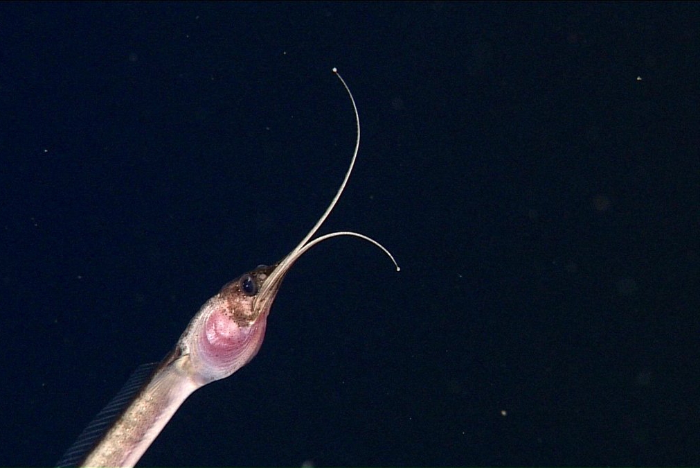 가늘고 긴 몸에 무서울 얼굴을 한 이 물고기는, 아래턱에서 뻗은 1깨의 턱수염의 끝이 발광해 먹이를 유인한다. 수심 300~1000m에 서식하며, 거의 180°로 열리는 커다란 입으로 먹이를 통째로 삼킨다. 몸길이는 약 50cm 정도이지만 수컷은 8cm 정도밖에 되지 않는다. '유어(幼魚: 알에서 갓 깬 어린 물고기)' 때는 양 눈이 뚜렷이 튀어나와 있다.