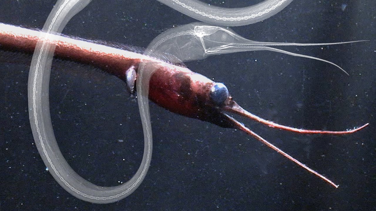 암컷은 보통 54cm 정도이며, 수컷은 12~16mm로 암컷에 비하면 훨씬 작고 암컷에 기생한다. 보통 열대 해역에서 한대 해역의 수심 500~2000m의 중간 심층부에 서식하고, 성장해 나감에 따라 서식 심도는 깊어진다. 암컷은 어류, 갑각류, 두족류를 먹는다.