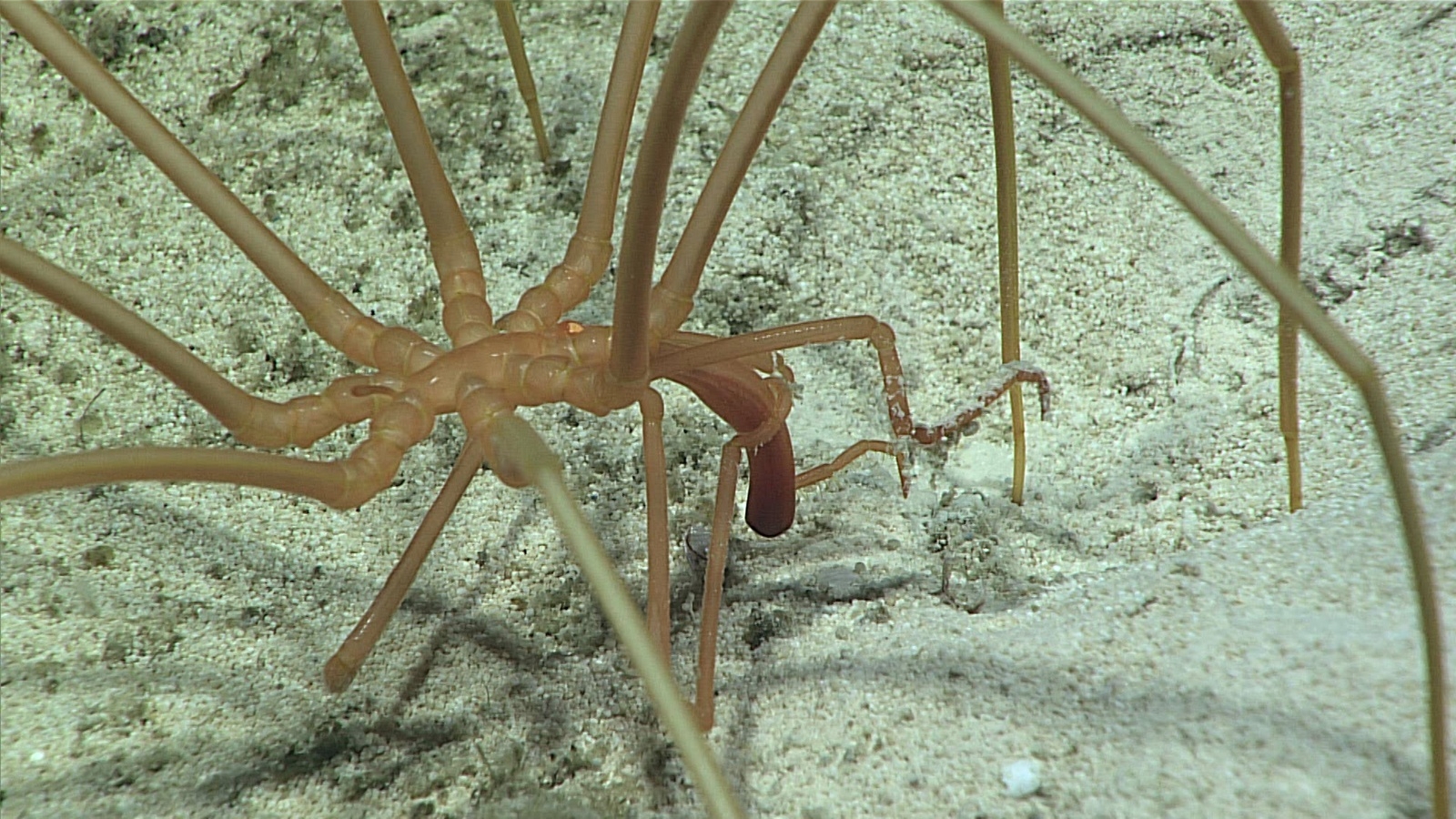 절지동물로, 바다거미류 중에서 최대이다. 몸길이는 약 8.5cm 정도이지만, 발의 길이는 35cm 정도이다. 육상 거미류와 마찬가지로 몸에서 8개의 장대한 발이 나와 있다. 1000~3000m의 해저에 살며, 때로는 헤엄친다.