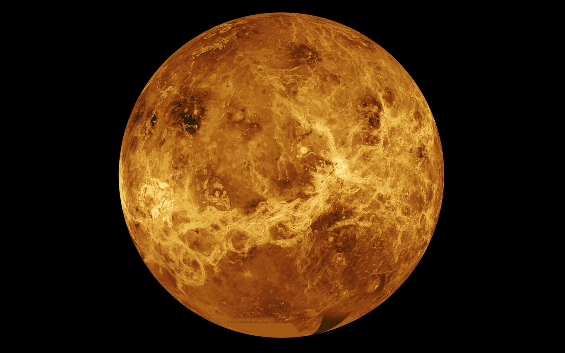 아래의 사진은 1974년 탐사선 '매리너 10호(Mariner 10)'가 금성에 가장 접근했을 때 촬영한 것이다. 금성은 두꺼운 황의 구름으로 덮여 있으며, 태양광을 반사해 '금색'으로 보인다.