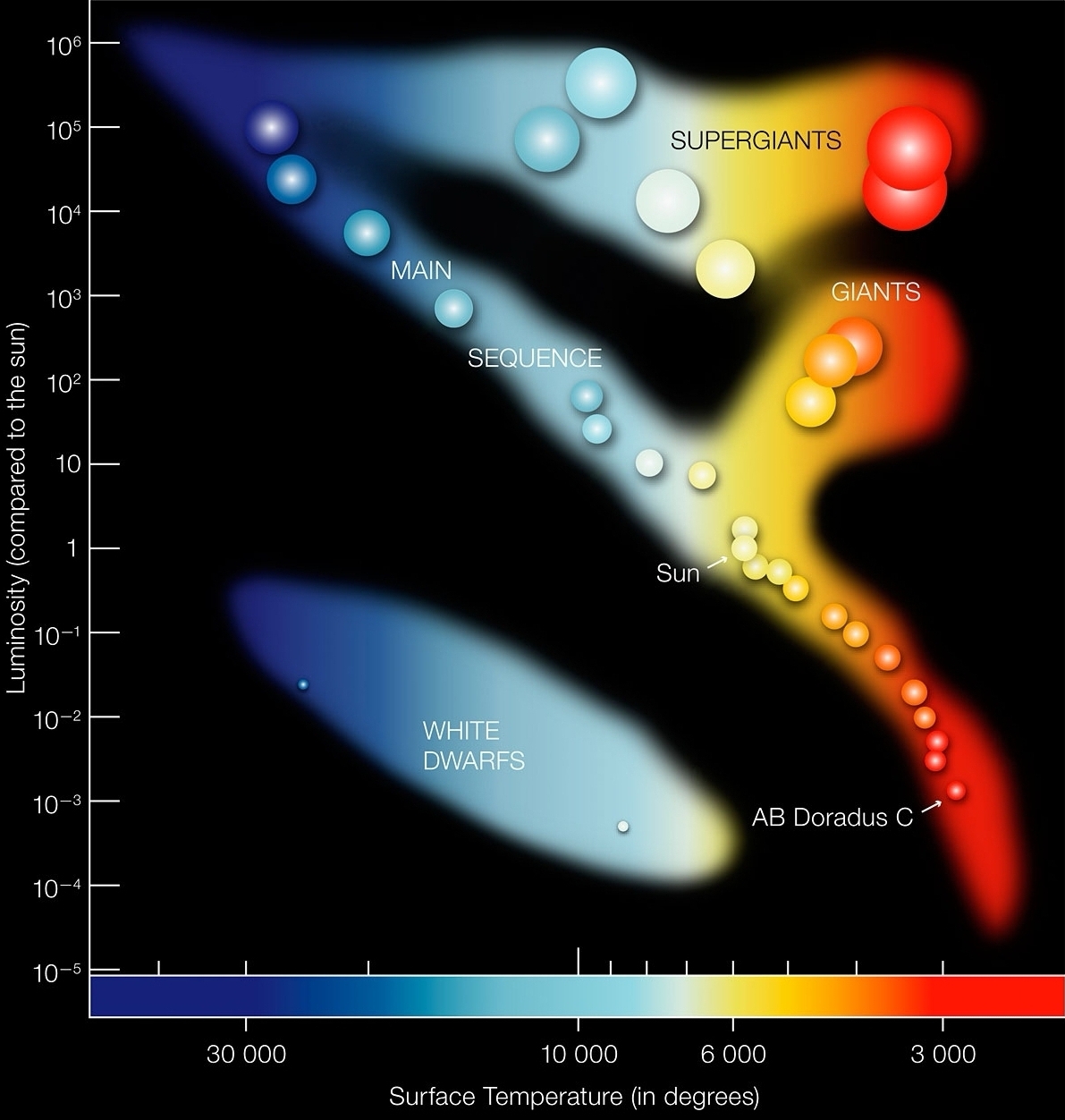 미국의 천문학자 '헨리 러셀(Henry Norris Russell, 1877~1957)'과 덴마크의 천문학자 '에즈나 헤르츠스프룽(Ejnar Hertzsprung, 1873~1967)'은 별의 밝기를 의미하는 '절대 등급'과 온도를 의미하는 '색(Color)'의 관계에 주목했다. 그리고 밝기를 세로축으로, 색을 가로축으로 하여, 거기에 별들을 나열했다. 이 그림을 'HR도' 또는 '헤르츠스프룽·러셀도(Hertzsprung-Russell diagram)'라고 하며, 별의 일생을 추측하는 자료로 이용한다.