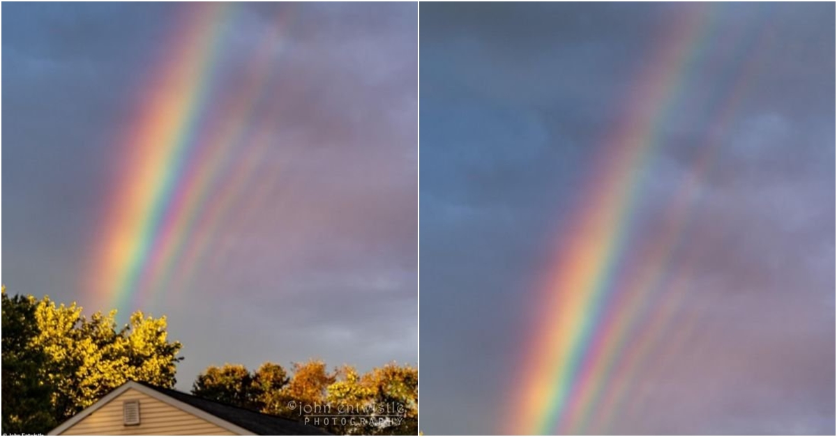 사진작가 '존 엔트위슬(John Entwistle)'씨는 미국 '뉴저지(New Jersey)'에 있는 자신의 집 마당에서 일몰을 촬영하다가 무려 5개의 무지개가 동시에 뜨는 광경을 목격했다고 한다. 아래의 사진은 당시 '존 엔트위슬'씨가 찍은 5개의 무지개가 동시에 뜬 사진이다. 이러한 무지개도 '과잉 무지개'라고 할 수 있다.